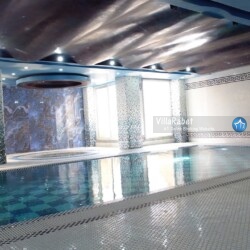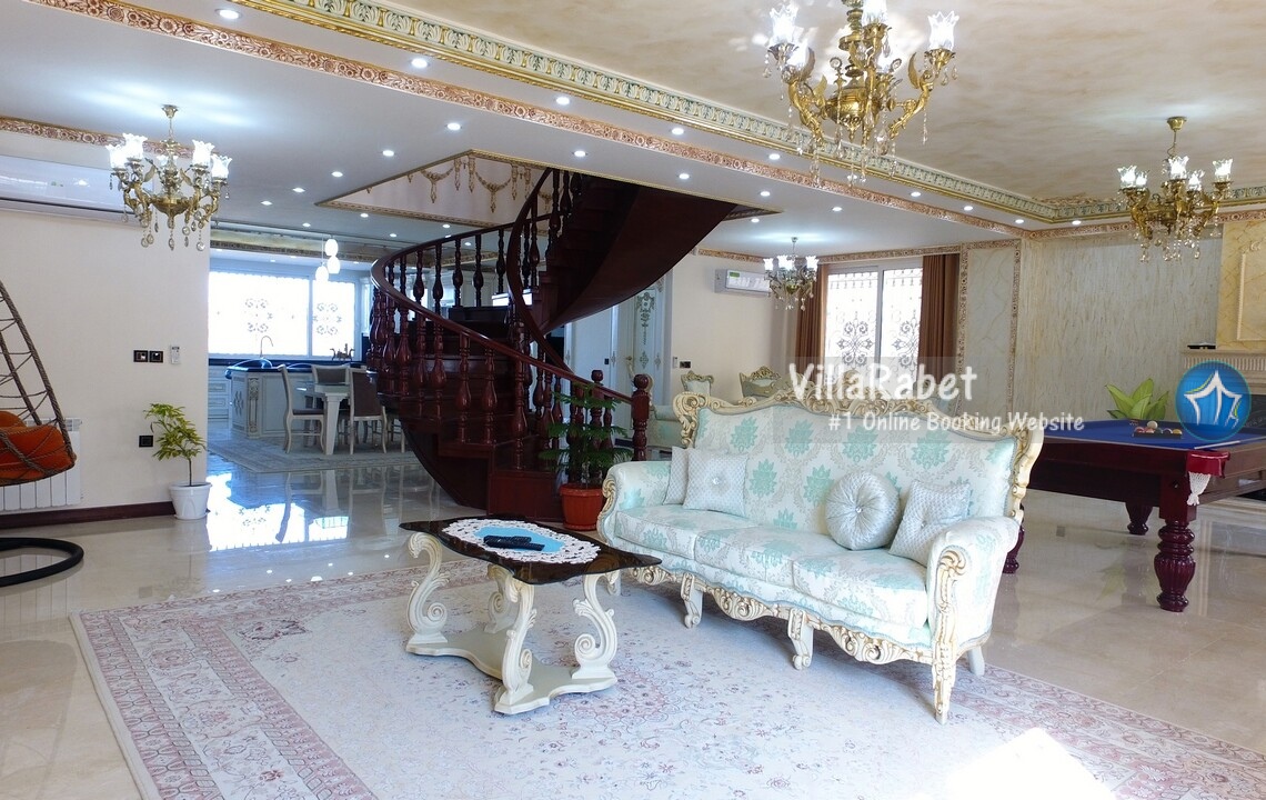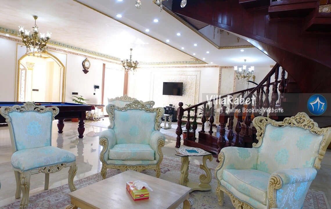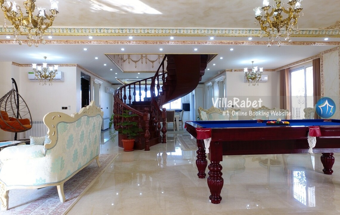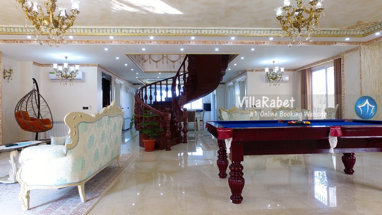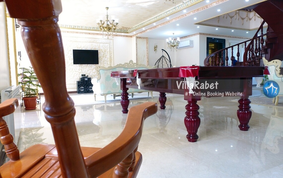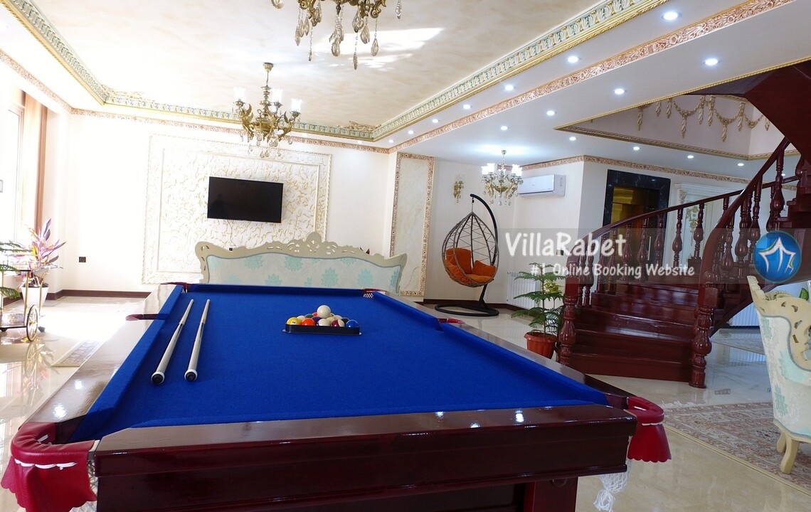 اجاره ویلای لوکس استخر و جکوزی جنگلی در متل قو در منطقه ای جنگلی و ویلایی دارای محیطی آرام و نزدیک به جنگل با ویوی بی نظیر کوه و جنگل و شهر متل قو ، دارای تمامی امکانات اقامتی و رفاهی در چهار طبقه ، طبقه همکف ویلا سالن استخر سرپوشیده آبگرم و جکوزی می باشد که از طریق طبقه اول امکان دسترسی برای آن فراهم گردیده است ، در طبقه اول که ورودی اصلی ویلا می باشد سالن نشیمن ، میز بیلیارد ، تاب ، تلویزیون ، آشپزخانه و مطبخ قرار دارد که برای دسترسی به طبقات بالا از طریق پله گرد چوبی فراهم می باشد .