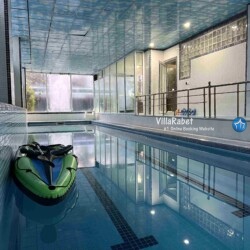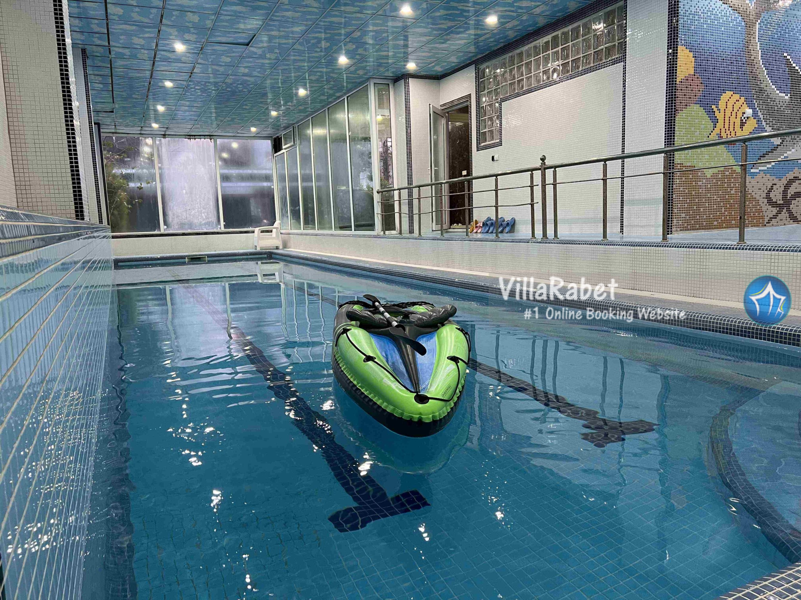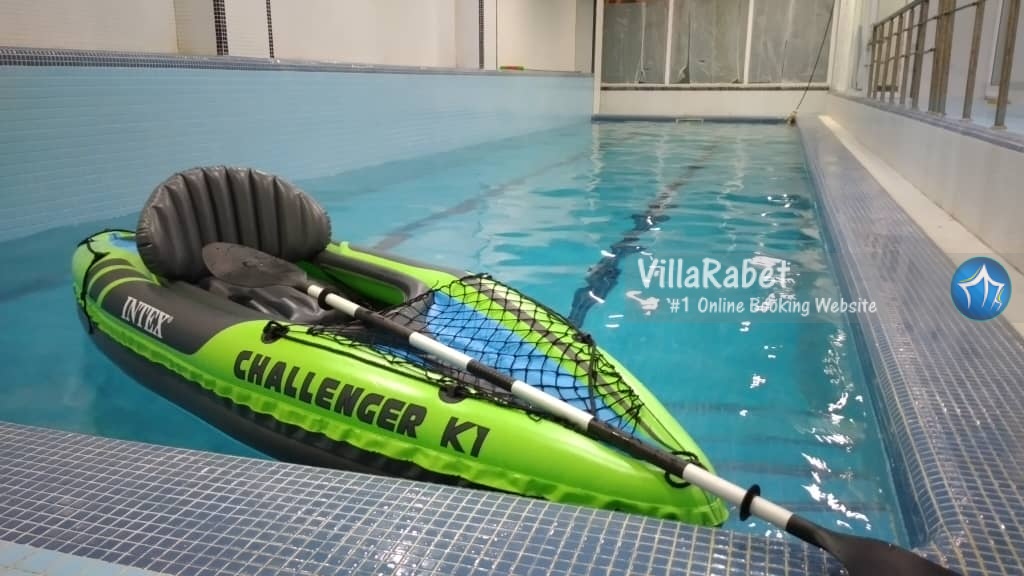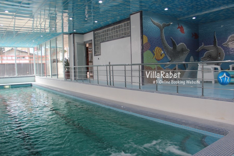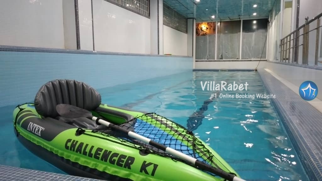 طبقه همکف ویلا یک استخر سرپوشیده بسیار بزرگ که امکان قایق سواری در آن وجود دارد و یک قایق کایاک یک نفره در استخر قرار گرفته که قایق رانی بسیار لذت بخشی را در استخر تجربه خواهید کرد و بسیار شاد و مفرح است، و ورودی آسانسور ویلا برای دسترسی به طبقات ویلا قرار دارد ، در طبقه اول ویلا سالن پذیرایی ، یک اتاق خواب مستر ، آشپزخانه ای مجهز علاوه بر امکانات اولیه ، ماشین لباسشویی و ماشین ظرفشویی نیز قرار دارد ، سالن نشیمن با دو ست مبلمان و تلویزیون ال ای دی 52 اینچ قرار دارد ،