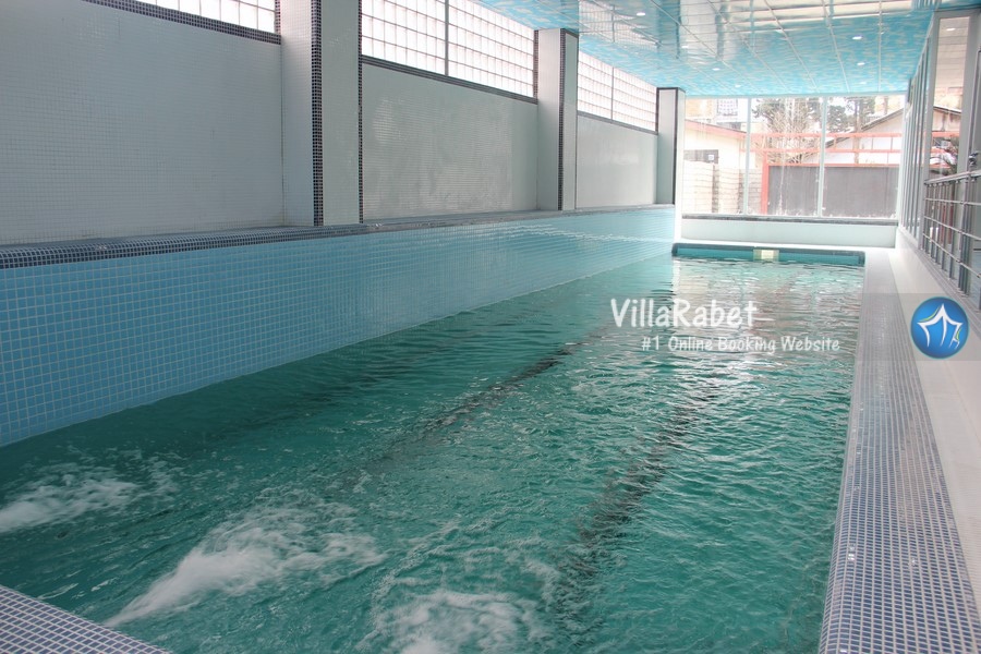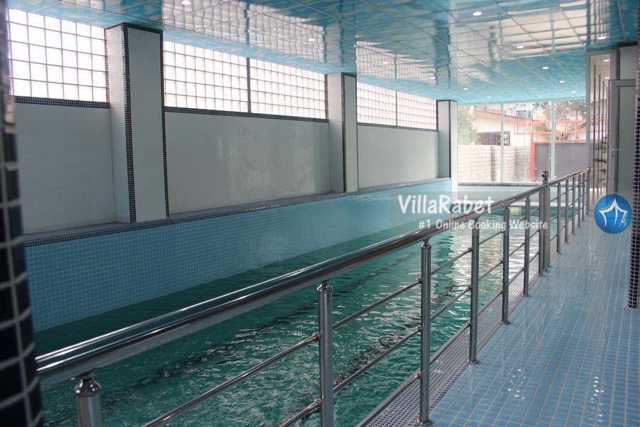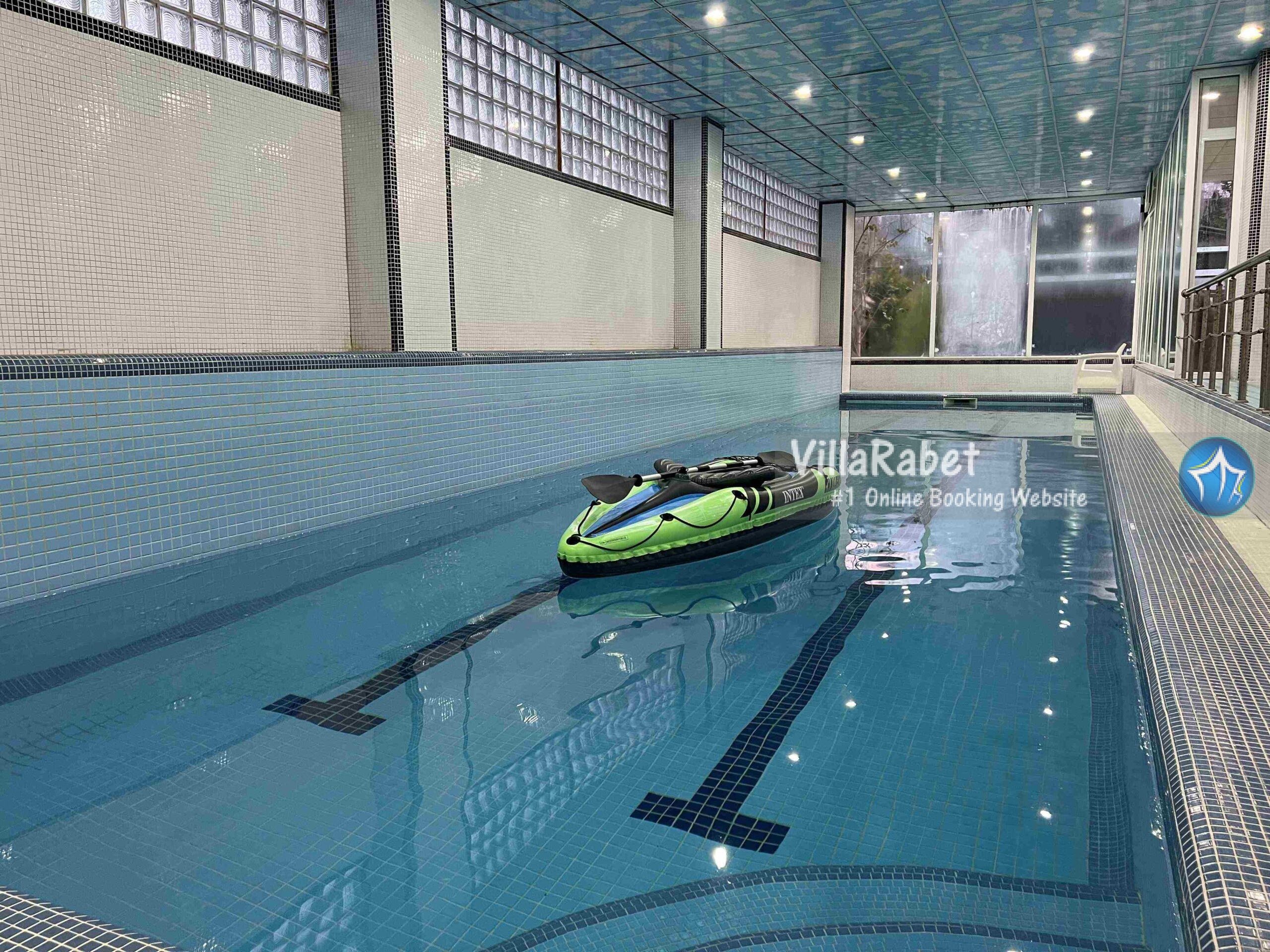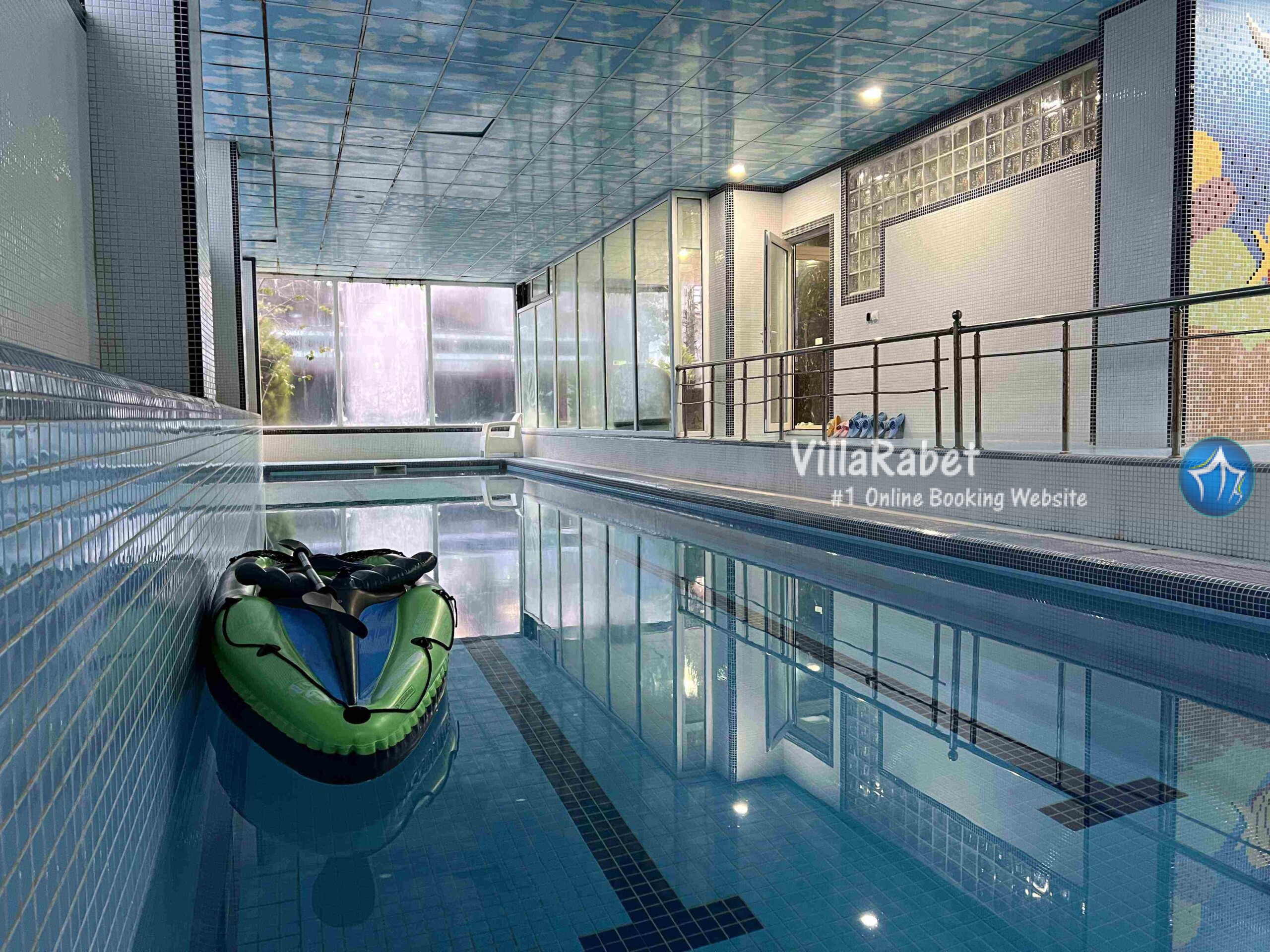 طبقه همکف ویلا یک استخر سرپوشیده بسیار بزرگ که امکان قایق سواری در آن وجود دارد و یک قایق کایاک یک نفره در استخر قرار گرفته که قایق رانی بسیار لذت بخشی را در استخر تجربه خواهید کرد و بسیار شاد و مفرح است، و ورودی آسانسور ویلا برای دسترسی به طبقات ویلا قرار دارد ، در طبقه اول ویلا سالن پذیرایی ، یک اتاق خواب مستر ، آشپزخانه ای مجهز علاوه بر امکانات اولیه ، ماشین لباسشویی و ماشین ظرفشویی نیز قرار دارد ، سالن نشیمن با دو ست مبلمان و تلویزیون ال ای دی 52 اینچ قرار دارد ،