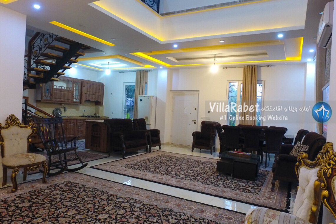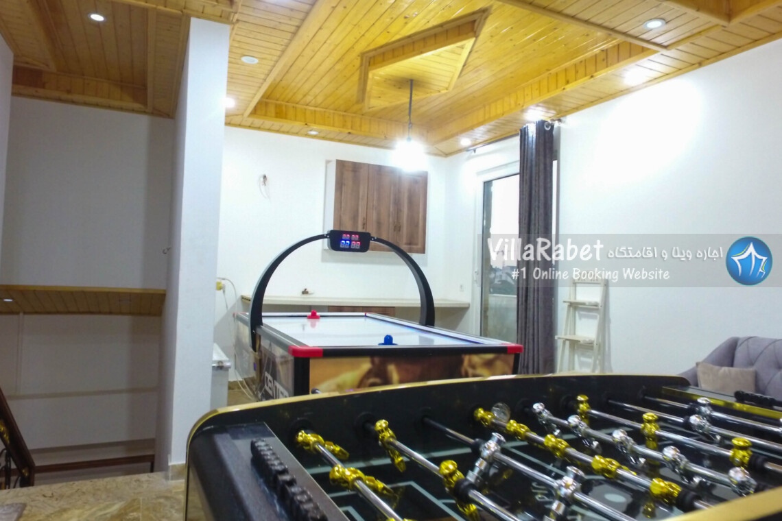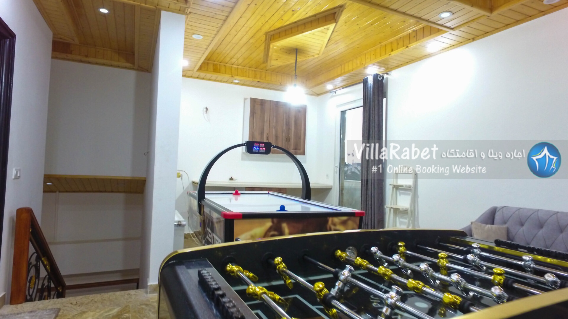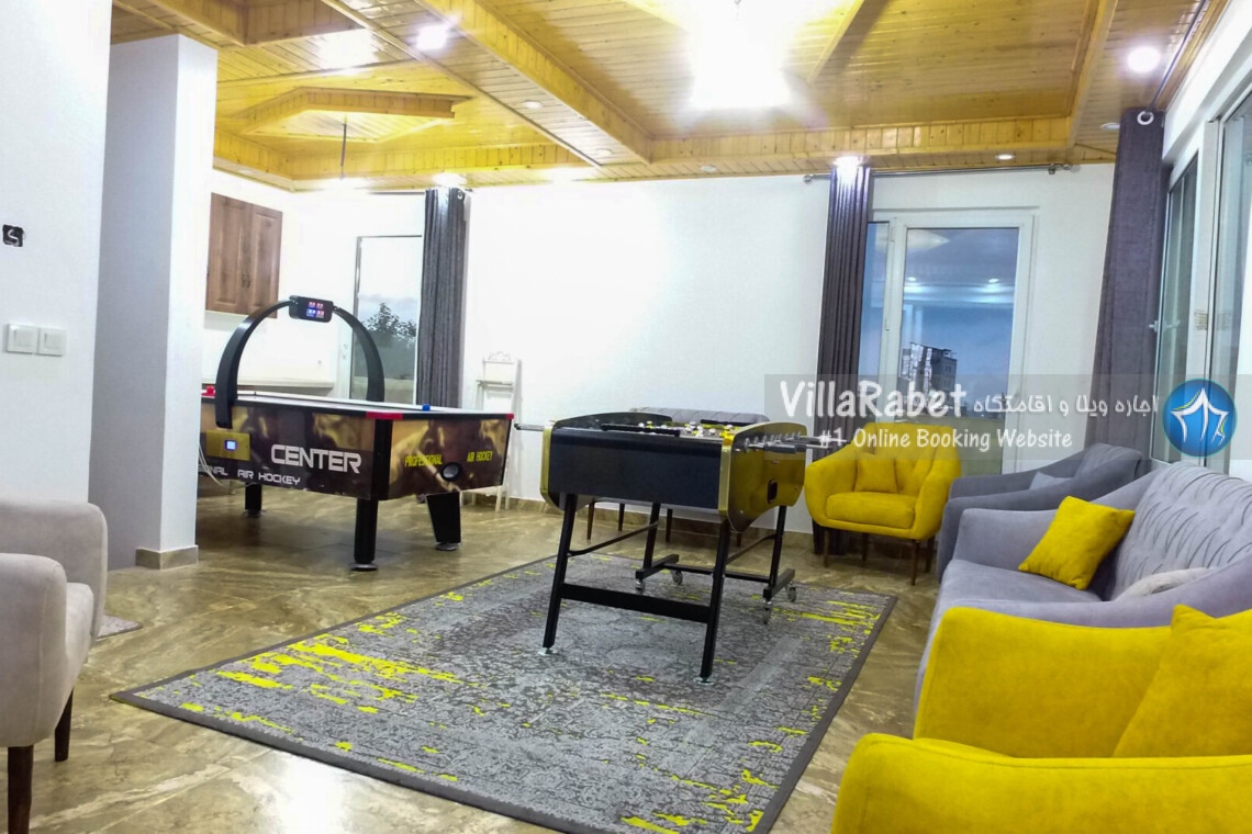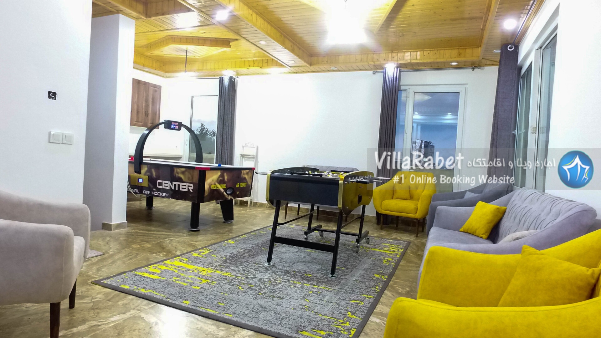 در طبقه اول ویلا سالن پذیرایی ، سالن استخر با نورپردازی ،با دید از سالن اصلی و آشپزخانه قرار دارد، از طریق پله ها دسترسی به طبقه دوم و سوم امکان پذیر است که اتاق خواب ها ، تراس های شمالی و جنوبی با منظره فضای باز و لوازم بازی ایرهاکی و فوتبال دستی قرار دارد.