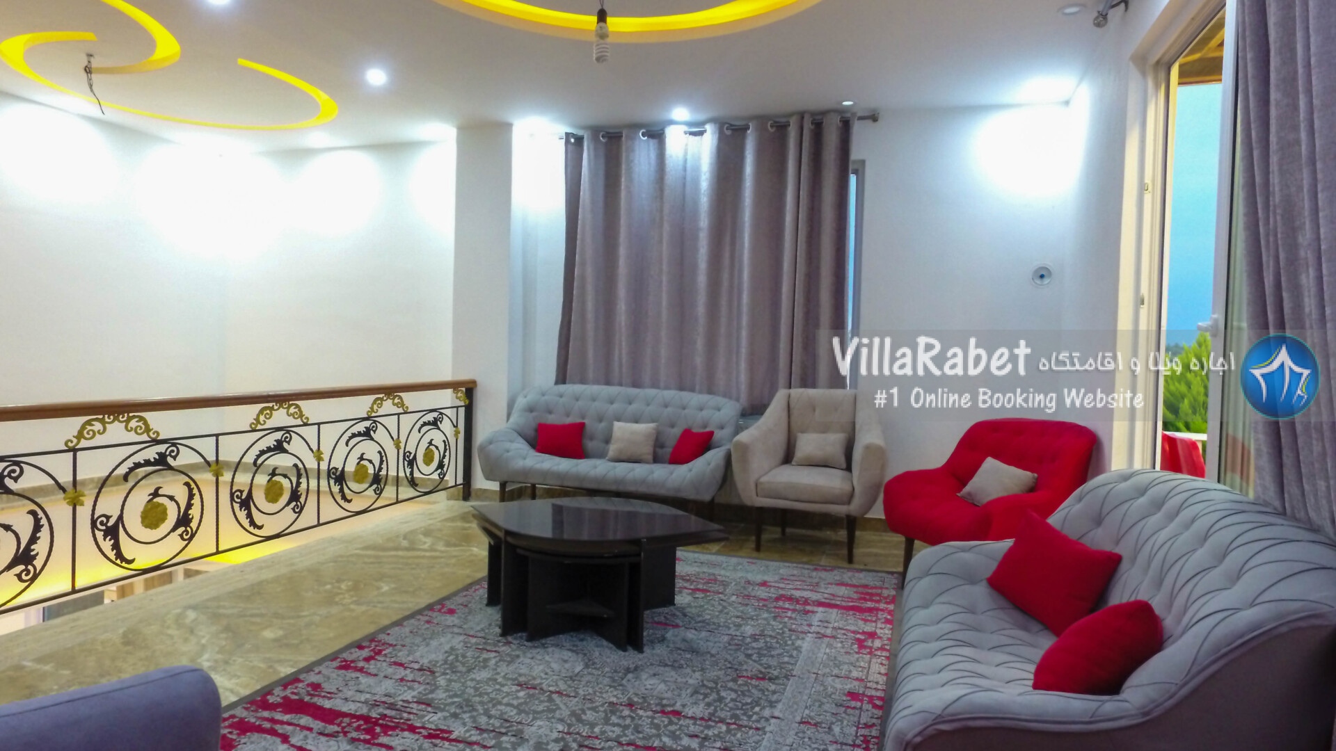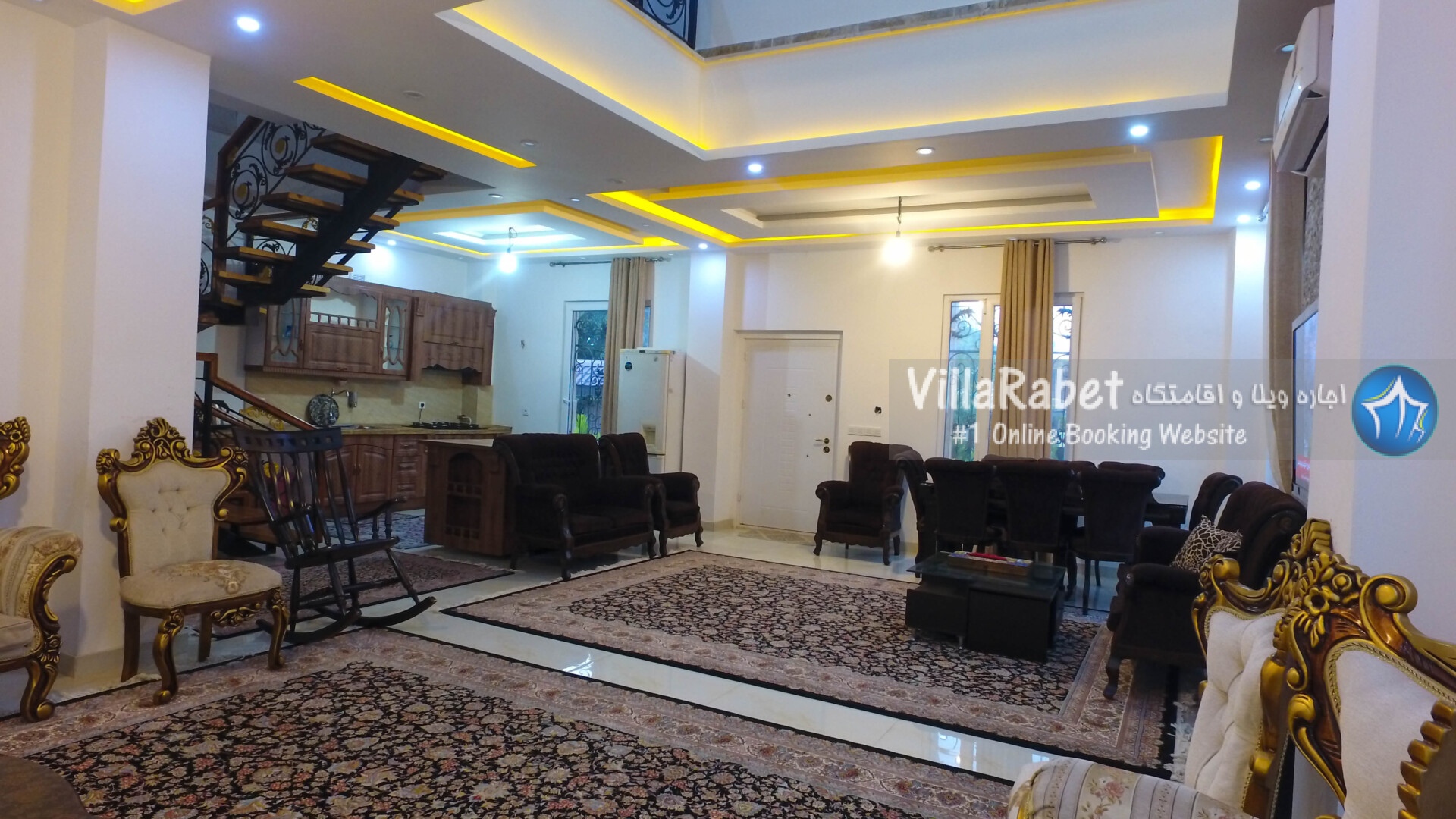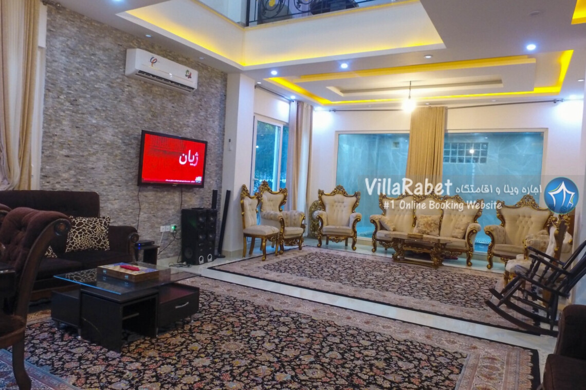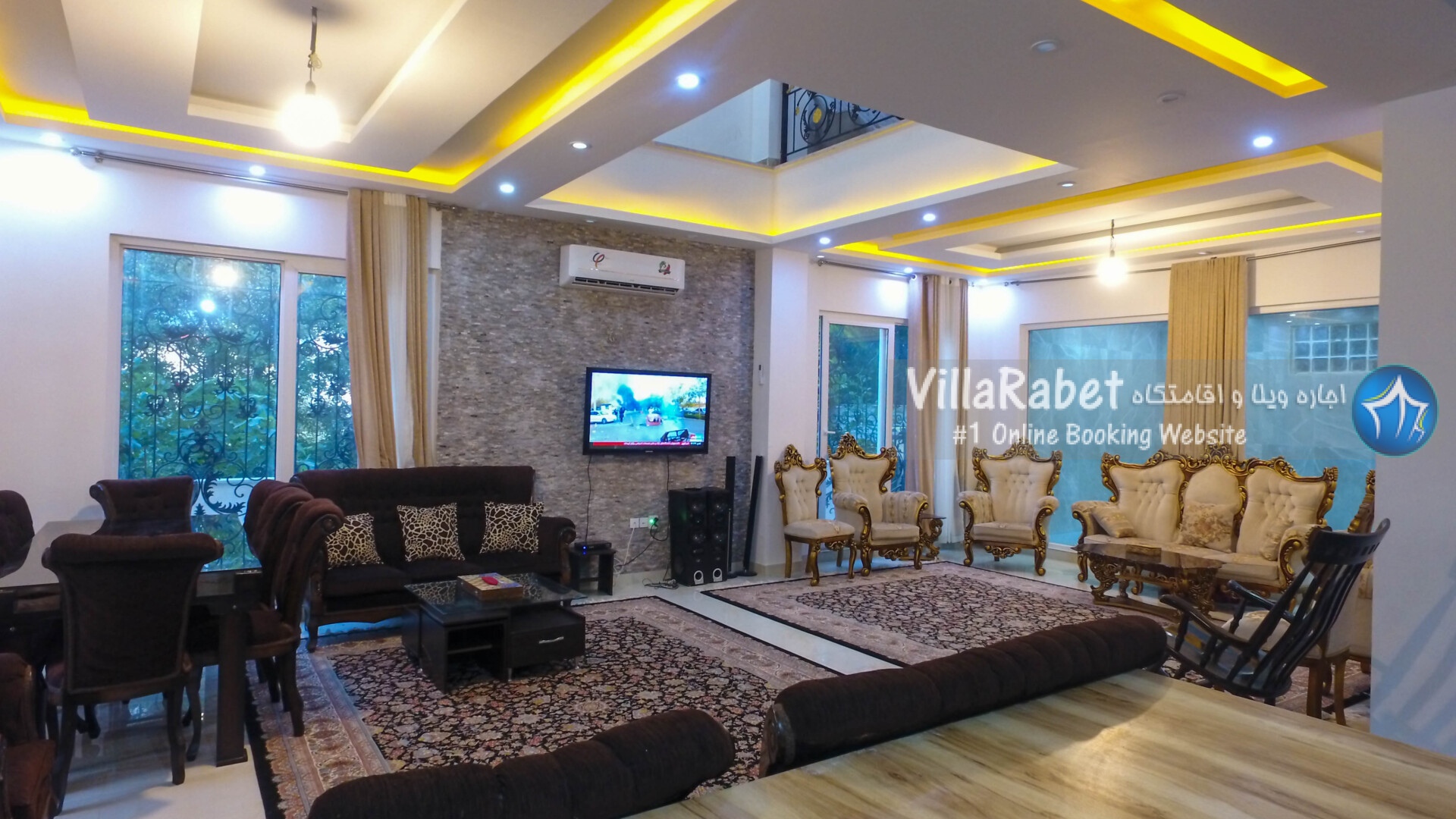 در طبقه اول ویلا سالن پذیرایی ، سالن استخر با نورپردازی ،با دید از سالن اصلی و آشپزخانه قرار دارد، از طریق پله ها دسترسی به طبقه دوم و سوم امکان پذیر است که اتاق خواب ها ، تراس های شمالی و جنوبی با منظره فضای باز و لوازم بازی ایرهاکی و فوتبال دستی قرار دارد.