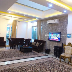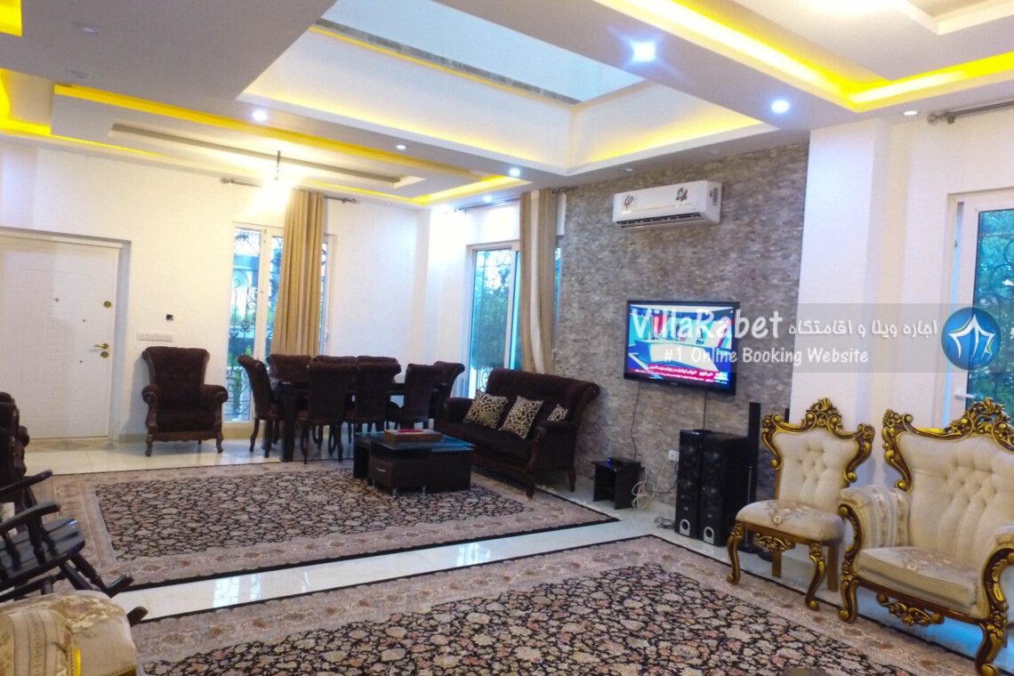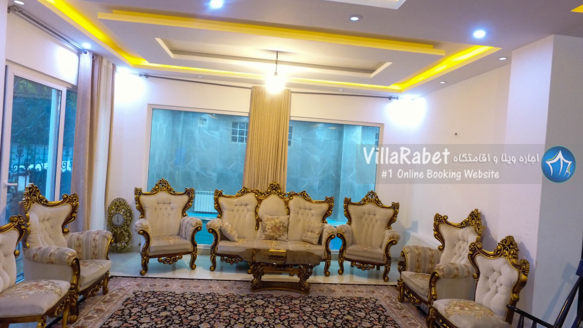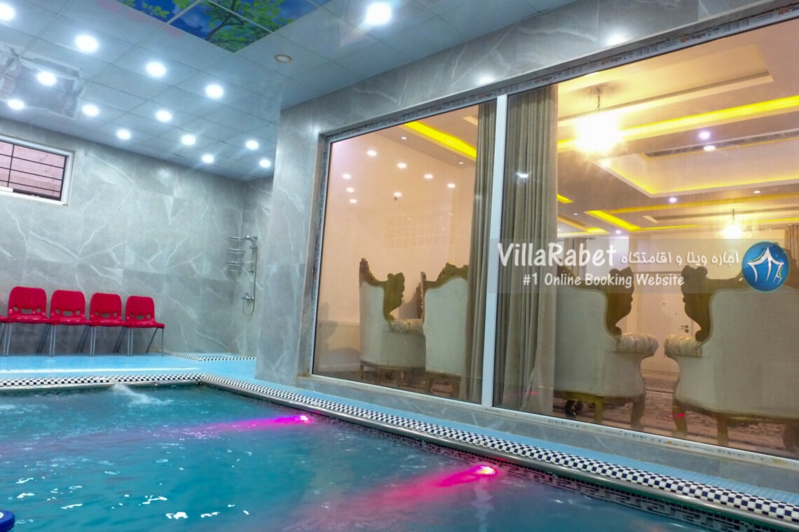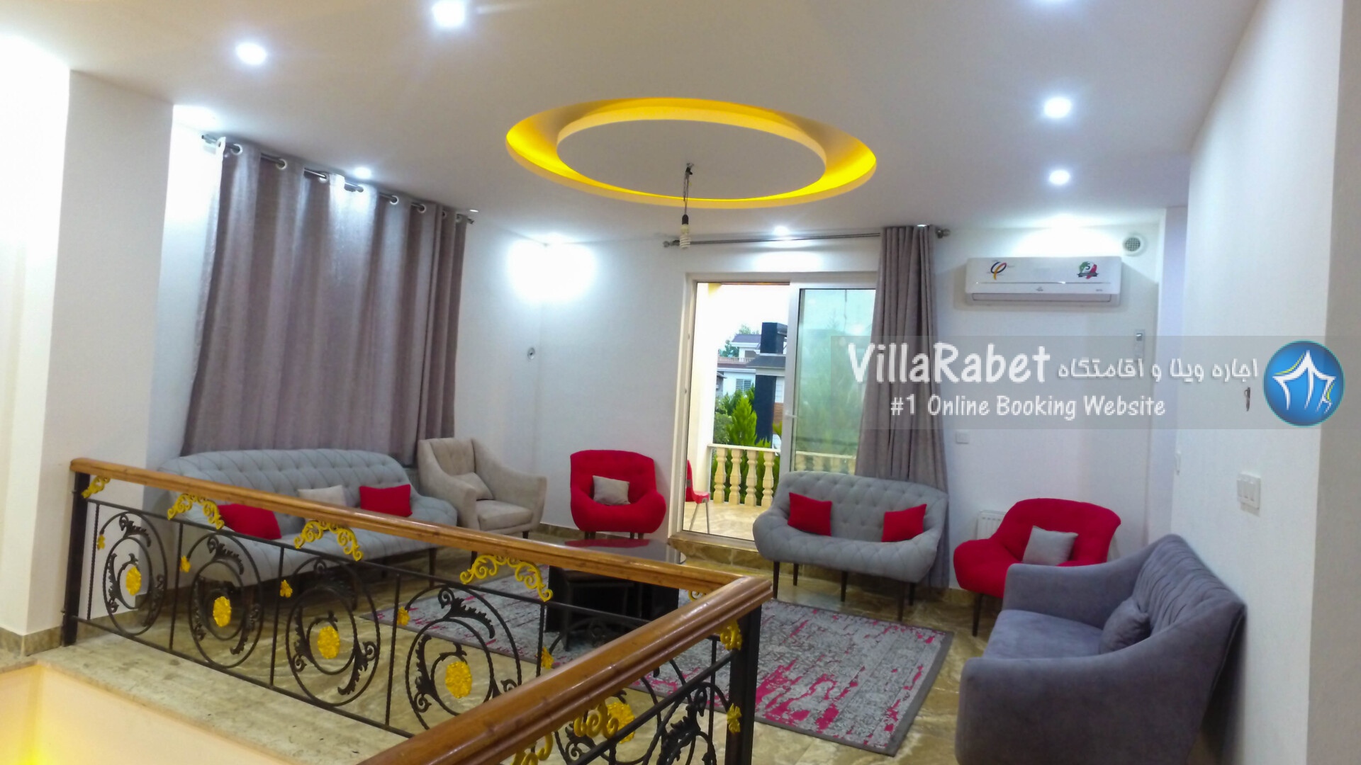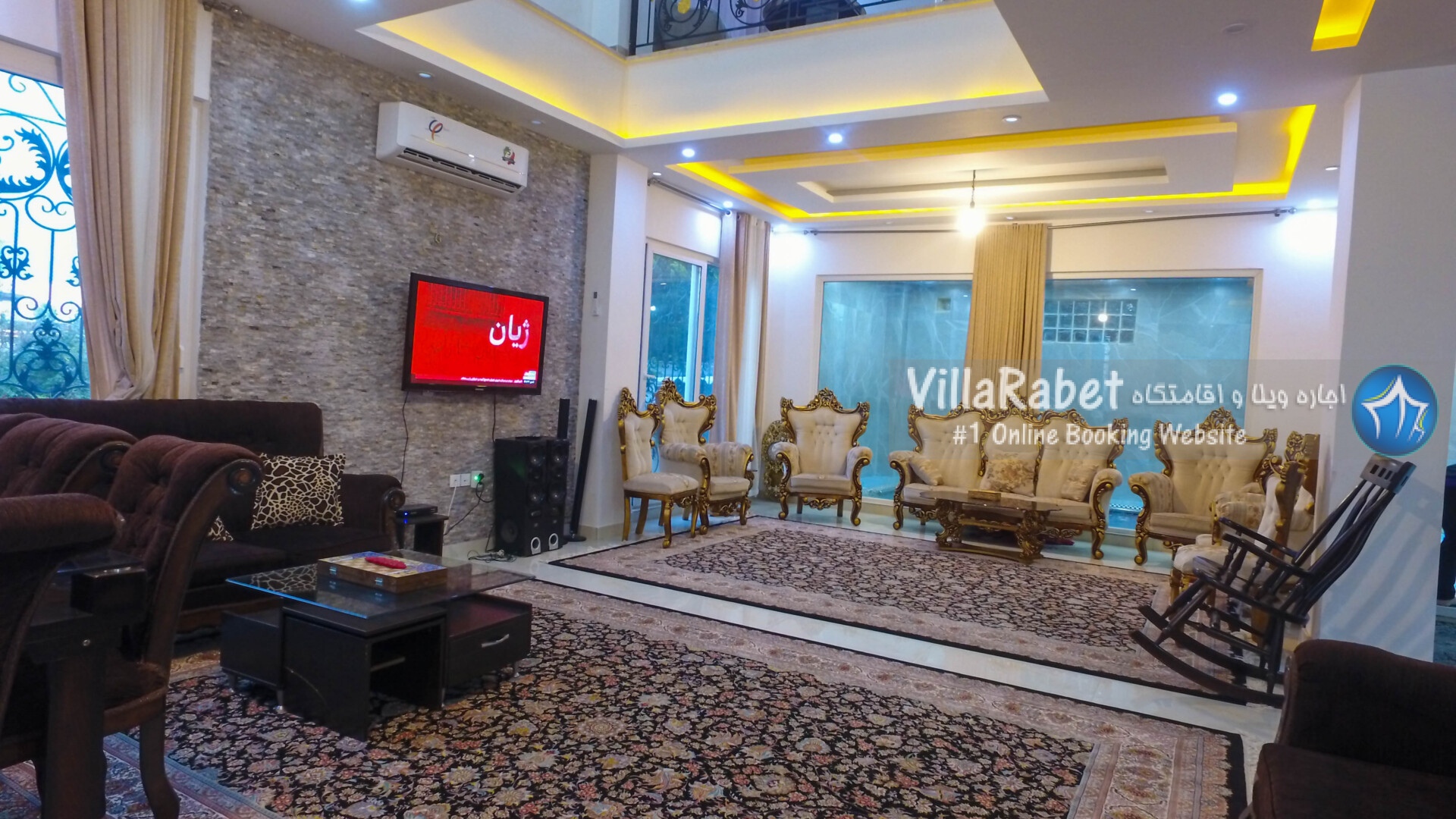 در طبقه اول ویلا سالن پذیرایی ، سالن استخر با نورپردازی ،با دید از سالن اصلی و آشپزخانه قرار دارد، از طریق پله ها دسترسی به طبقه دوم و سوم امکان پذیر است که اتاق خواب ها ، تراس های شمالی و جنوبی با منظره فضای باز و لوازم بازی ایرهاکی و فوتبال دستی قرار دارد.