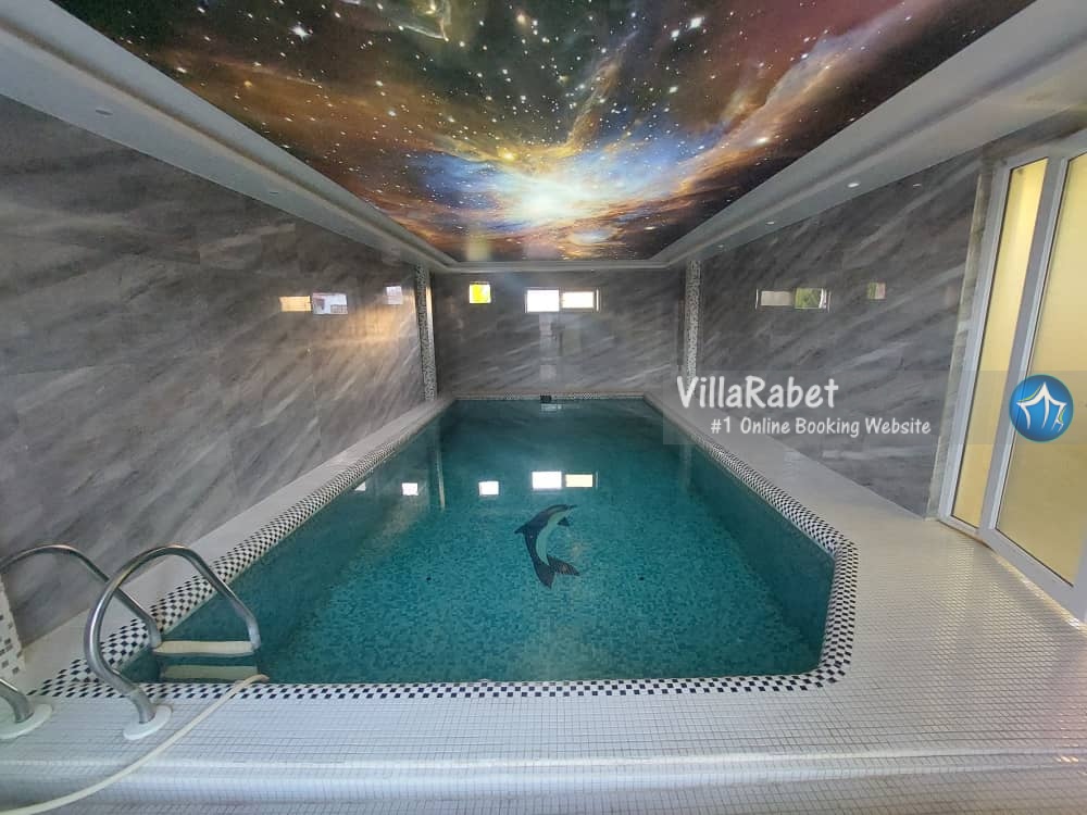 اجاره ویلا استخردار تیلورسر منطقه ای در متل قو ( سلمانشهر ) با طراحی دوبلکس دارای سه اتاق خواب ، دارای استخر سرپوشیده در طبقه اول دارای سیستم تسویه و آبگرم ، دارای میز بیلیارد و تراس