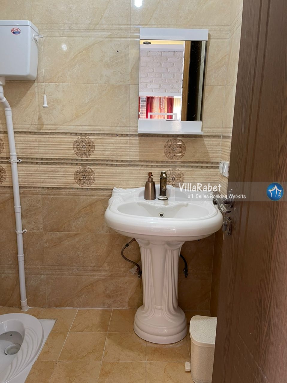 متراژ بنا 520 متر پنج خواب در دو طبقه .طبقه پایین یک خواب طبقه بالا چهار خواب .هر 5 خوابها مستر بصورت دوش حمام و فرنگی و روشویی0 یک سرویس عمومی بصورت توالت ایرانی طبقه پایین و یک سرویس مجزا در محوطه استخر بصورت دوش حمام و فرنگی .جمعا 7 سرویس ، سرمایش کولر اسپیلت 6 عدد .گرمایش رادیاتور شوفاژ باسیستم موتورخانه .