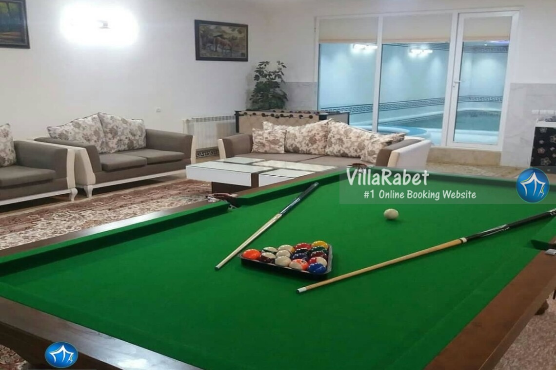 میز بیلیارد ، فوتبال دستی ، میز ناهار خوری ۸نفره ، تلویزیون ال ای دی ۴۳ اینچHD ، سیستم صوتی ، آون توستر ، چایی ساز ، سه کولر اسپیلت ، سیستم گرمایشی شوفاژ وکلیه امکانات رفاهی