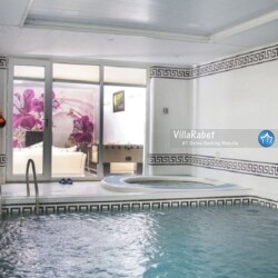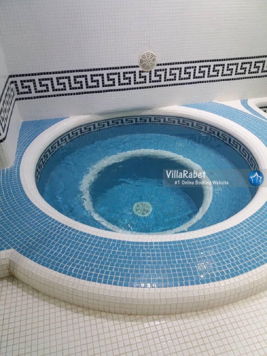 دارای استخرسرپوشیده آبگرم ۳۲ متری ۴ در ۸ بهمراه جکوزی با تصفیه اتومات آب