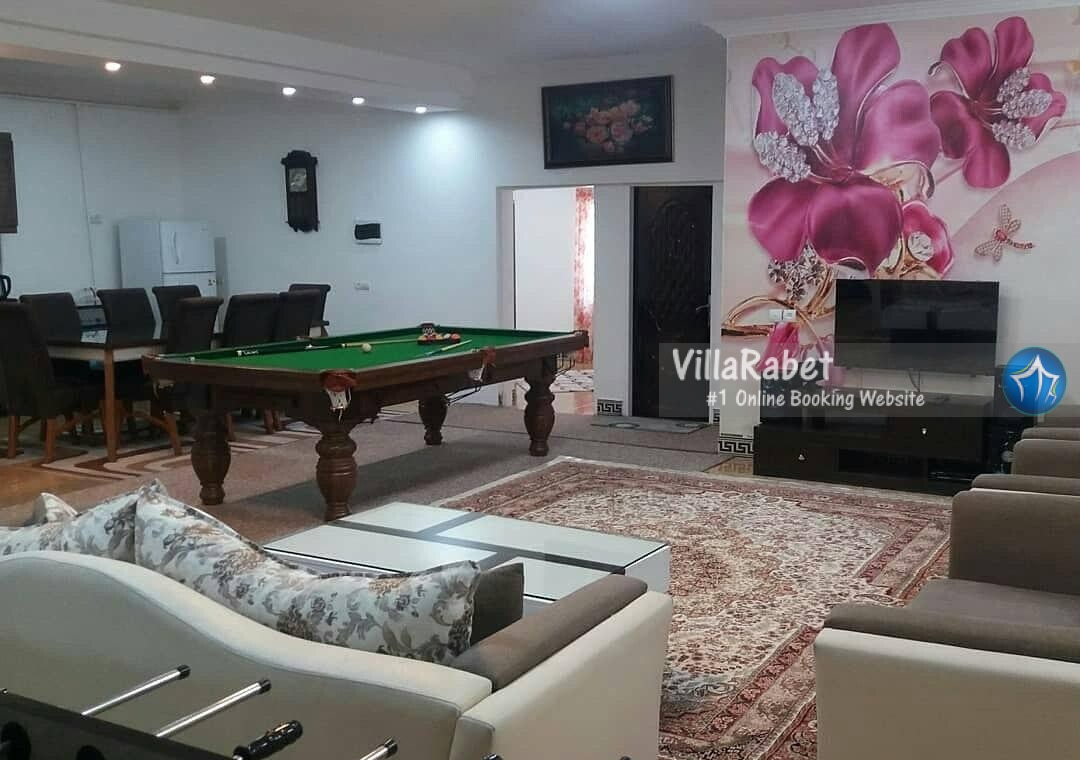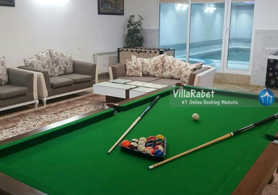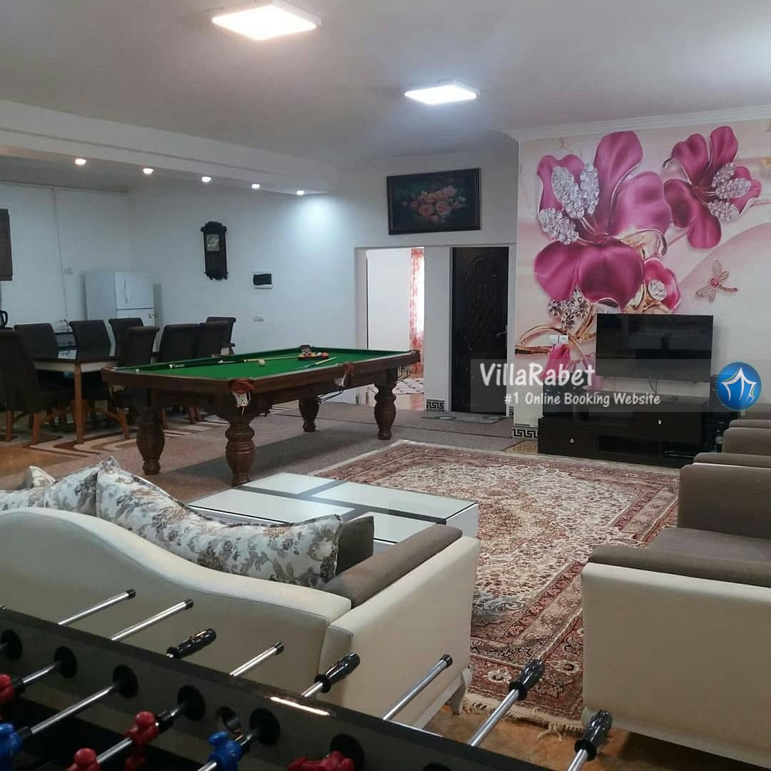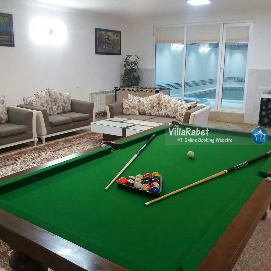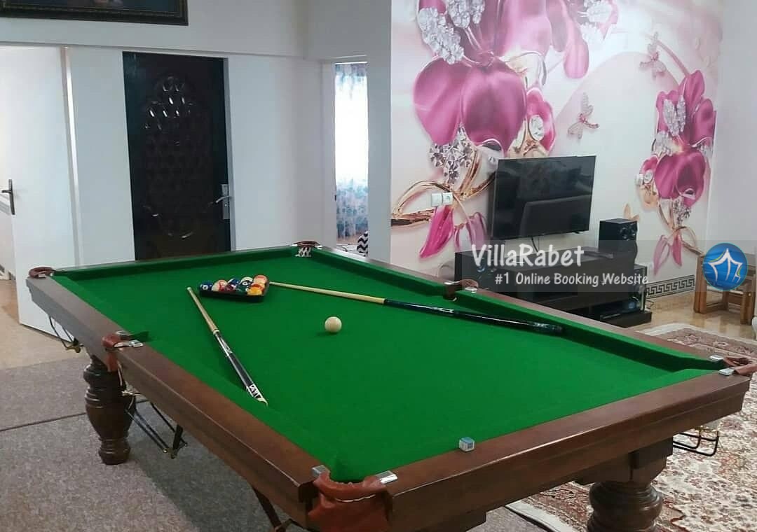 میز بیلیارد ، فوتبال دستی ، میز ناهار خوری ۸نفره ، تلویزیون ال ای دی ۴۳ اینچHD ، سیستم صوتی ، آون توستر ، چایی ساز ، سه کولر اسپیلت ، سیستم گرمایشی شوفاژ وکلیه امکانات رفاهی