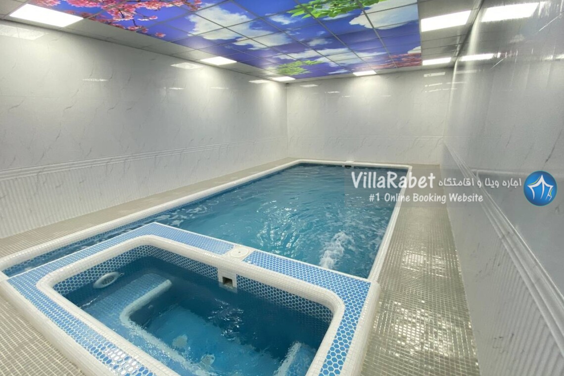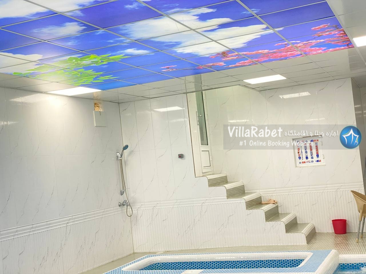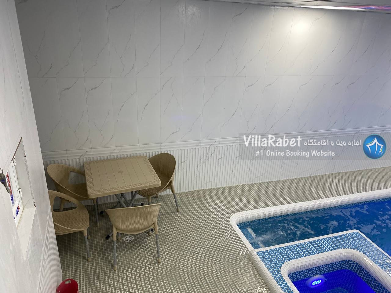 اجاره ویلا استخر آبگرم رامسر دو خوابه دارای استخر و جکوزی در سالن ویلا، و تراس رو به حیاط دارای منظره کوه و جنگل با دسترسی بسیار عالی به مراکز خرید ، فروشگاه ها و تله کابین رامسر