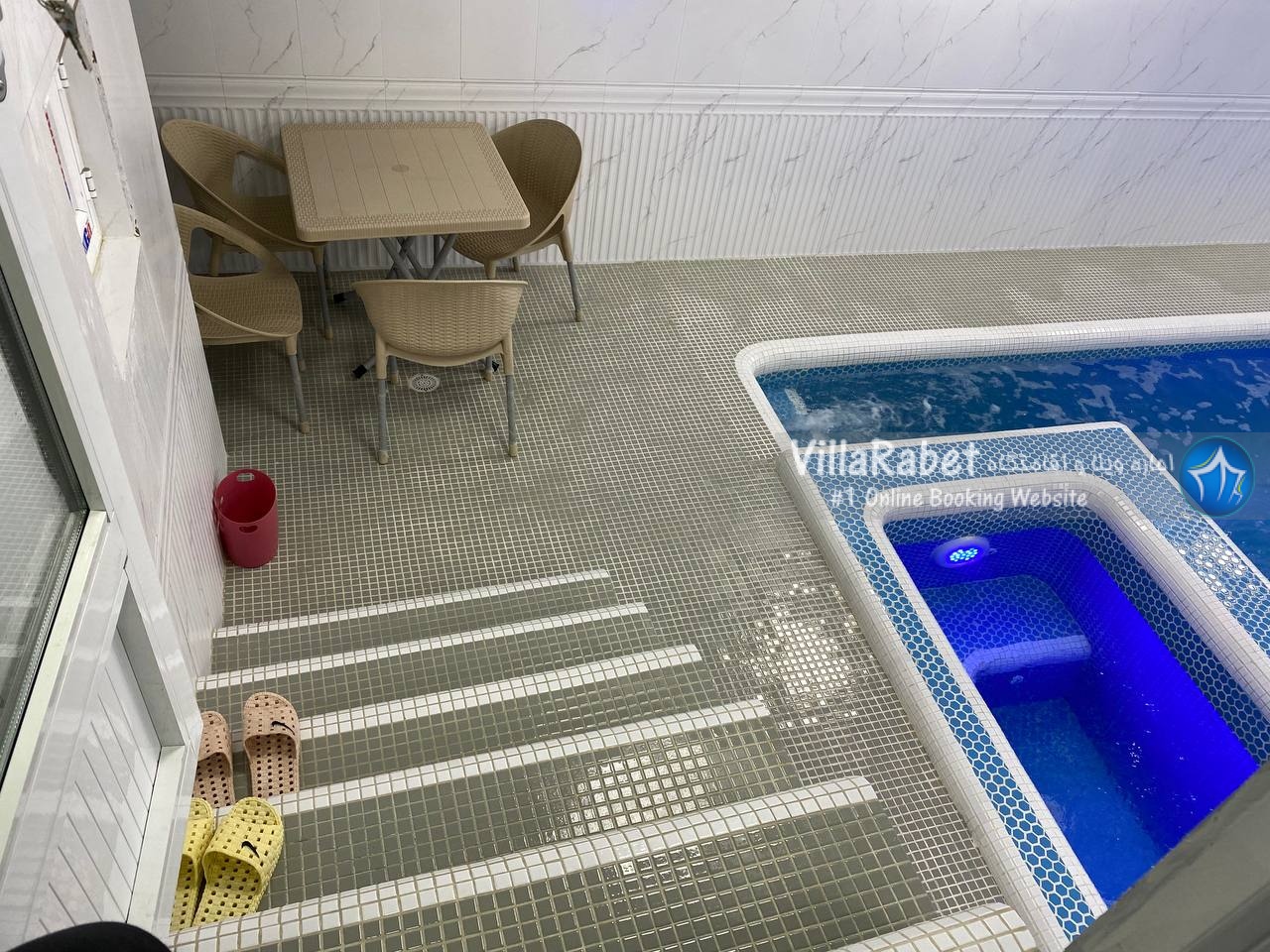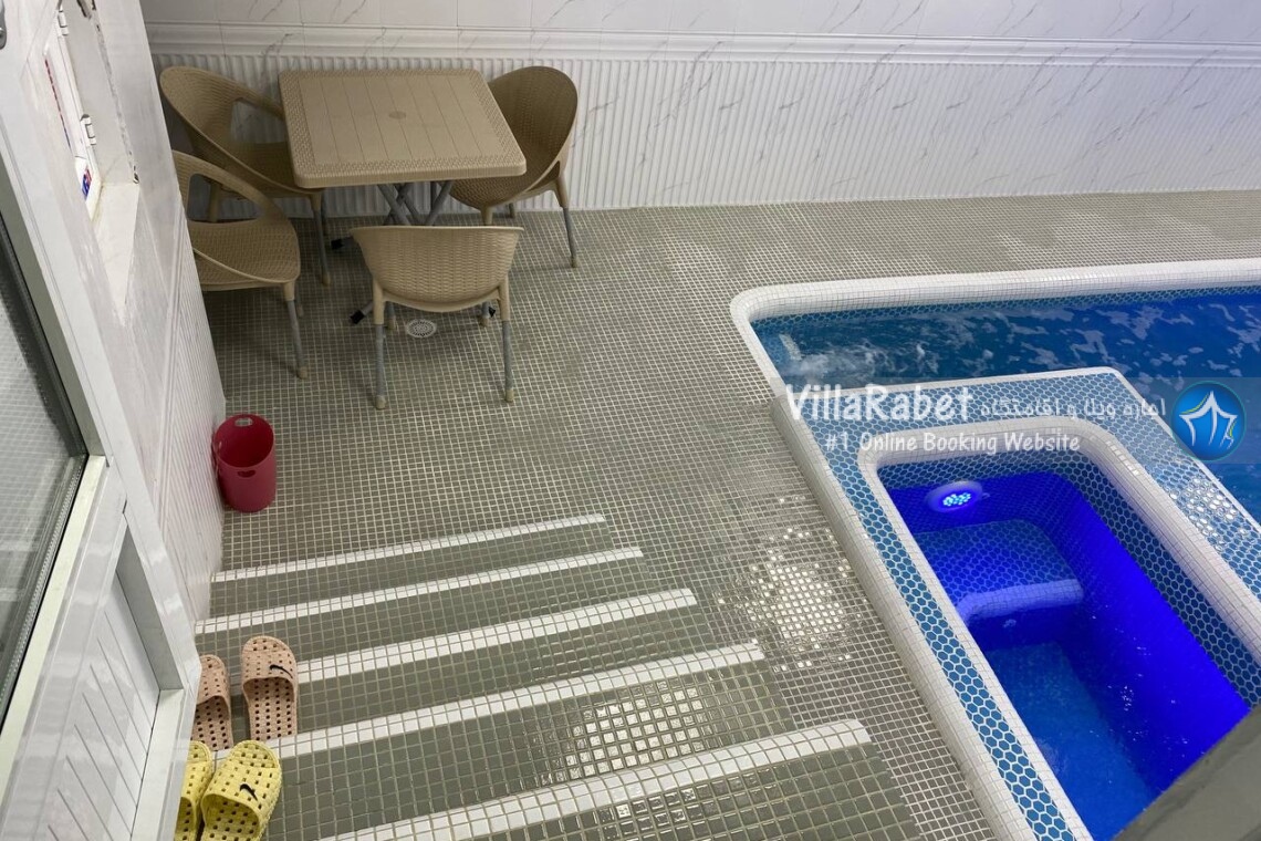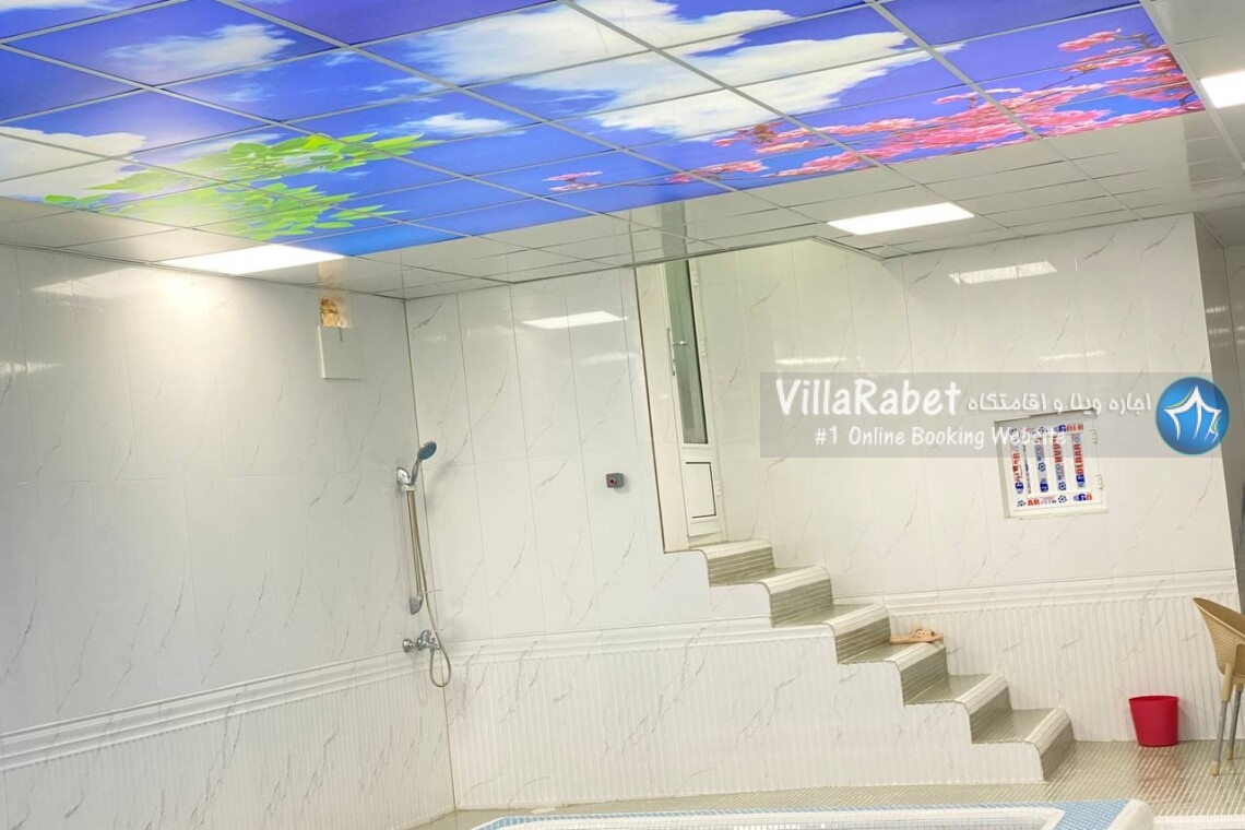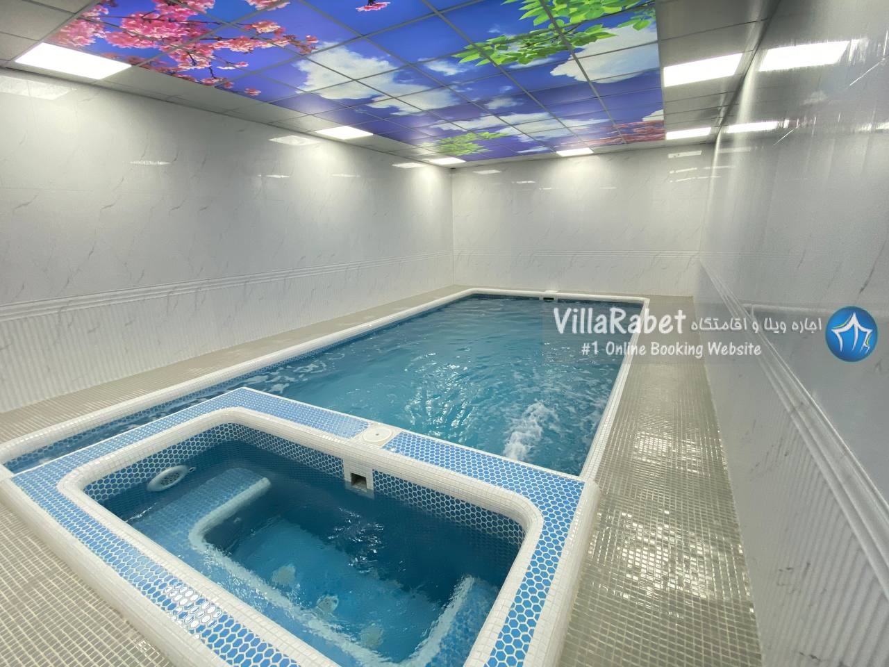 اجاره ویلا استخر آبگرم رامسر دو خوابه دارای استخر و جکوزی در سالن ویلا، و تراس رو به حیاط دارای منظره کوه و جنگل با دسترسی بسیار عالی به مراکز خرید ، فروشگاه ها و تله کابین رامسر
