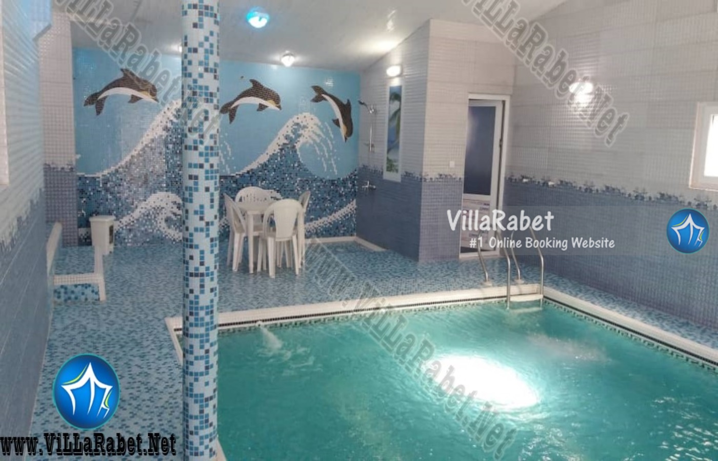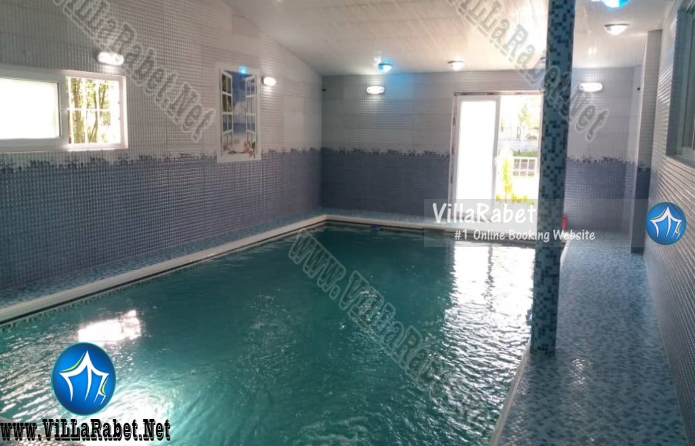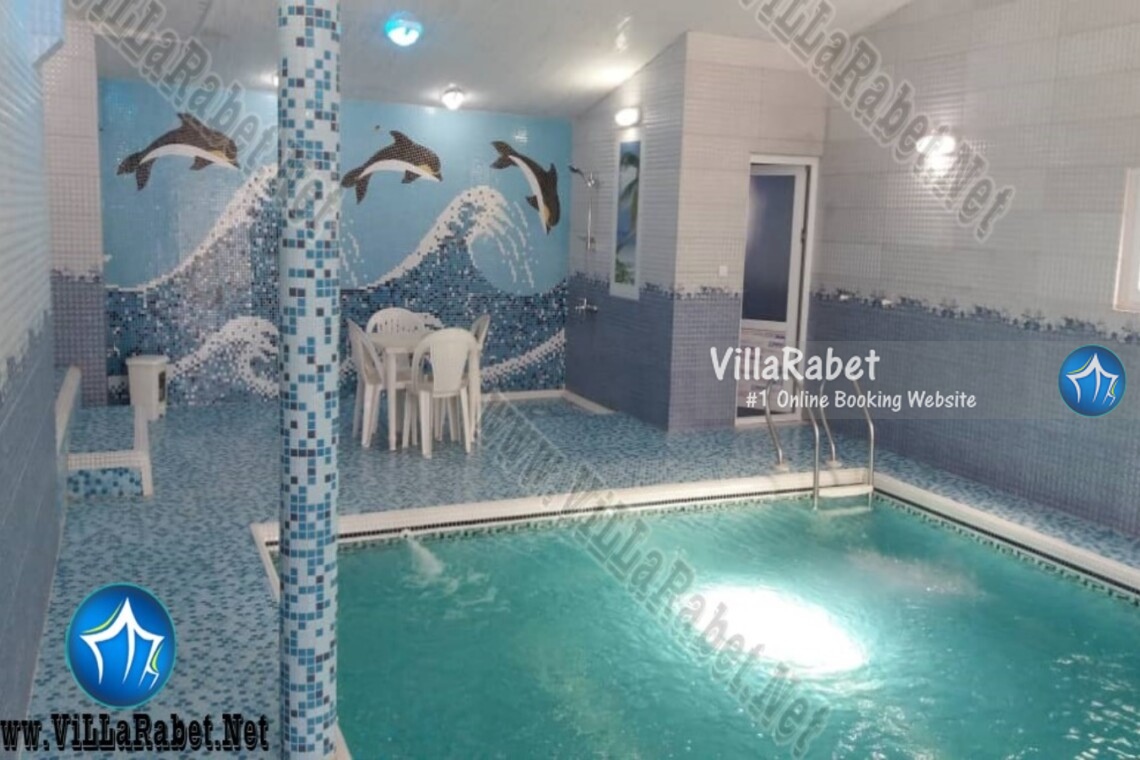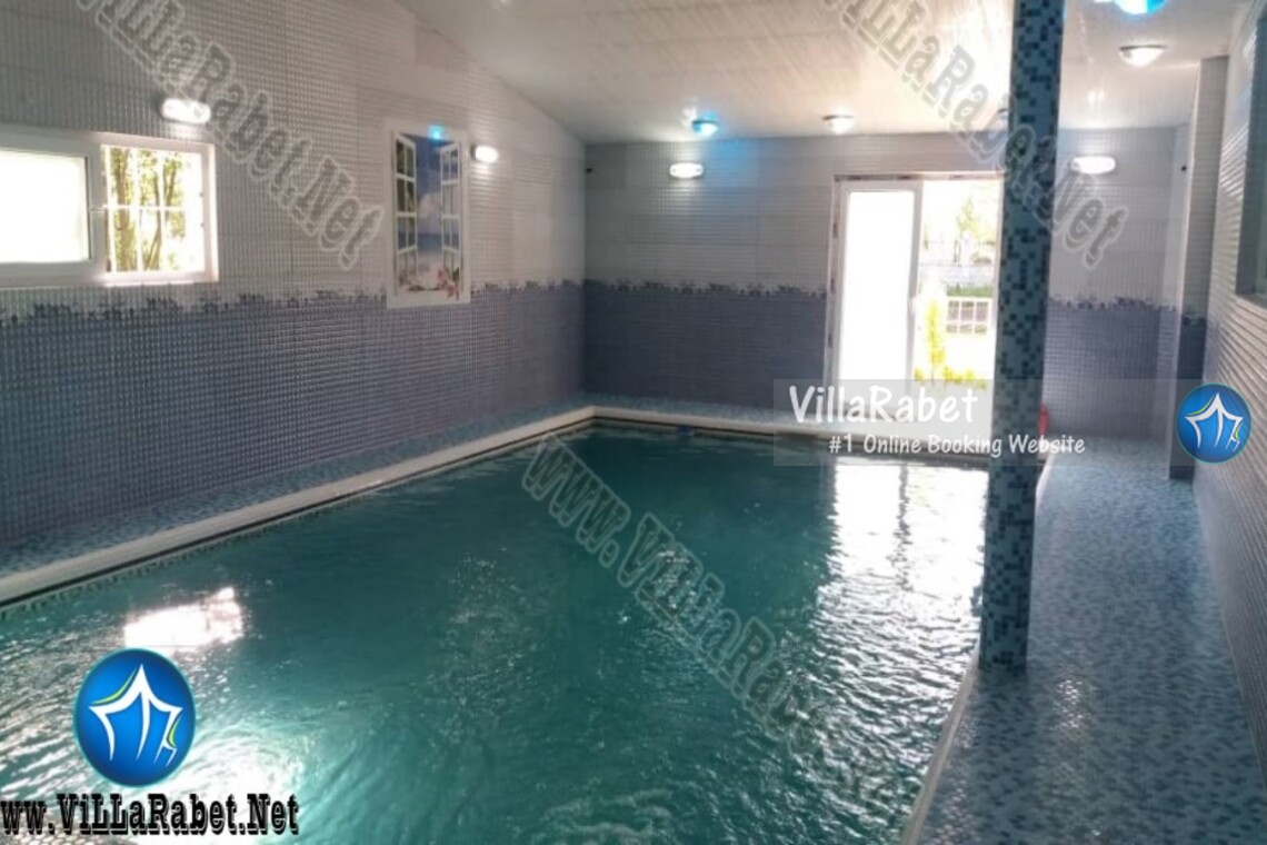 اجاره ویلایی دوخوابه استخردار در نزدیکی نمک آبرود دارای 2 اتاق خواب ، استخر سرپوشیده در داخل سالنی مجزا از ویلا با موقعیت شهرکی در چند دقیقه ای نمک آبرود و ساحل دریا ، بسیار نزدیک به مراکز خرید و تفریحی