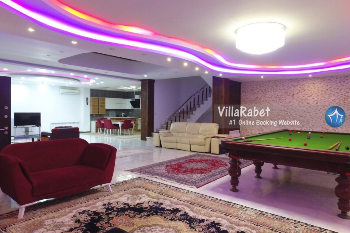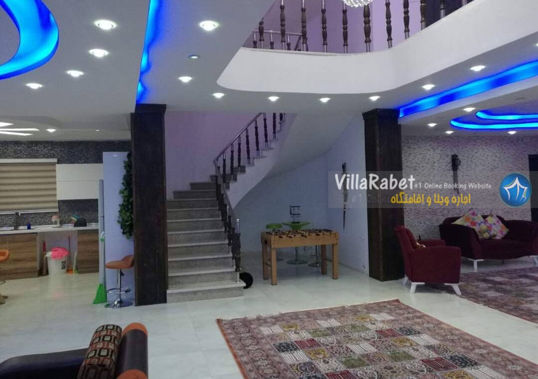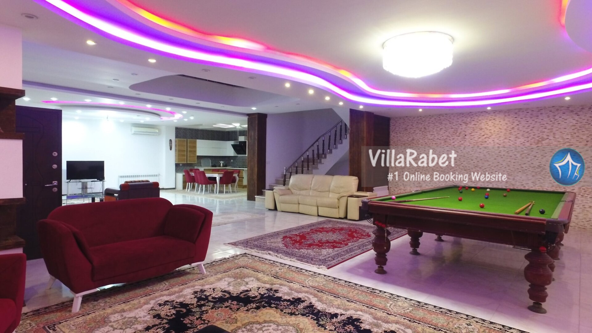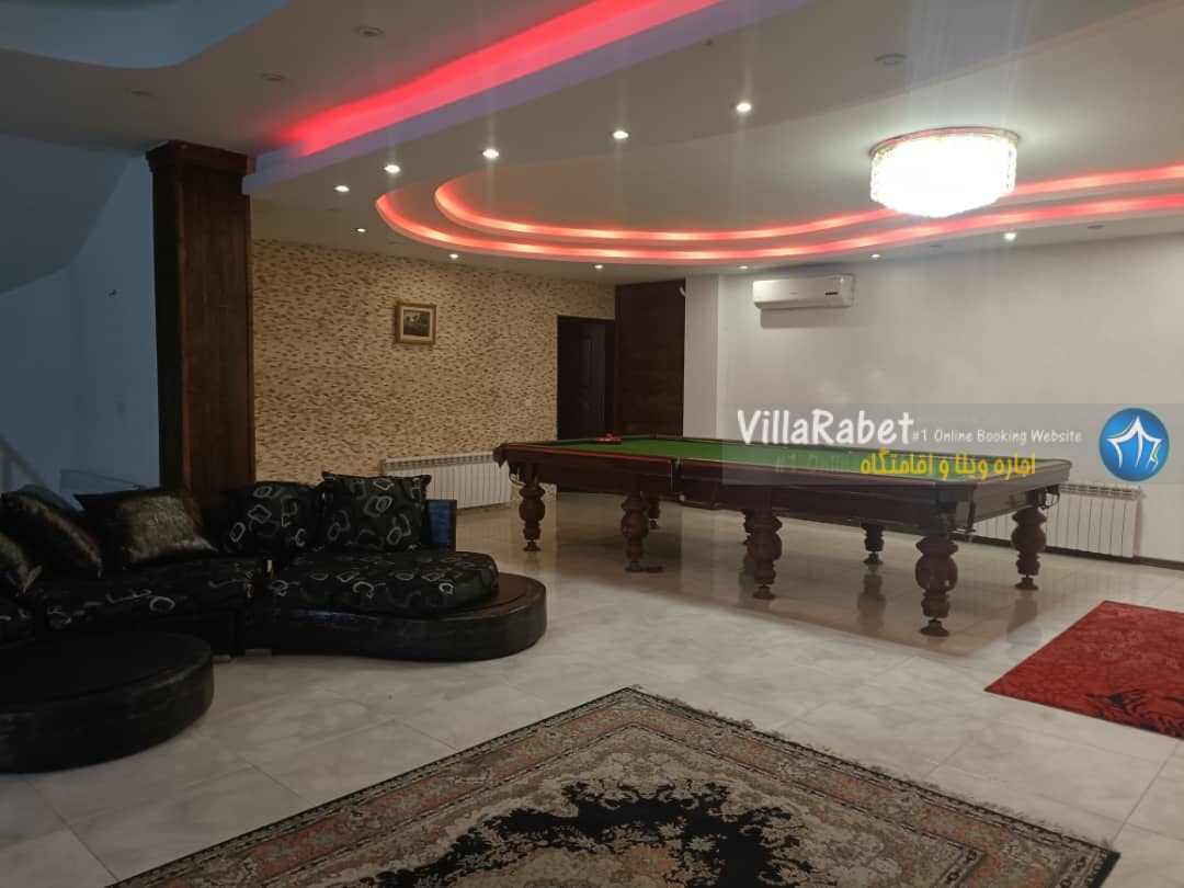 اجاره شبانه ویلا چهار خوابه متل قو دریاگوشه با استخر روباز در دو طبقه ، طبقه اول سالن پذیرایی بسیار بزرگ و میز اسنوکر و آشپزخانه در طبقه دوم سه اتاق خواب که مستر می باشد و دارای تخت خواب دو نفره است . با امکانات حیاط سازی بسیار زیبا و استخر روباز در حیاط ویلا آماده برای اجاره شبانه در متل قو
