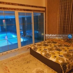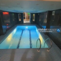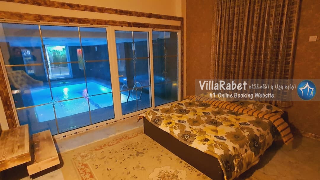 اجاره ویلا سه خوابه استخردار در محمودآباد دارای استخر سرپوشیده ابگرم و فوتبال دستی با حیاط دریست با تمام امکانات اقامتی و رفاهی، با دسترسی و دید به استخر از اتاق خواب ویلا، دارای طراحی دوبلکس