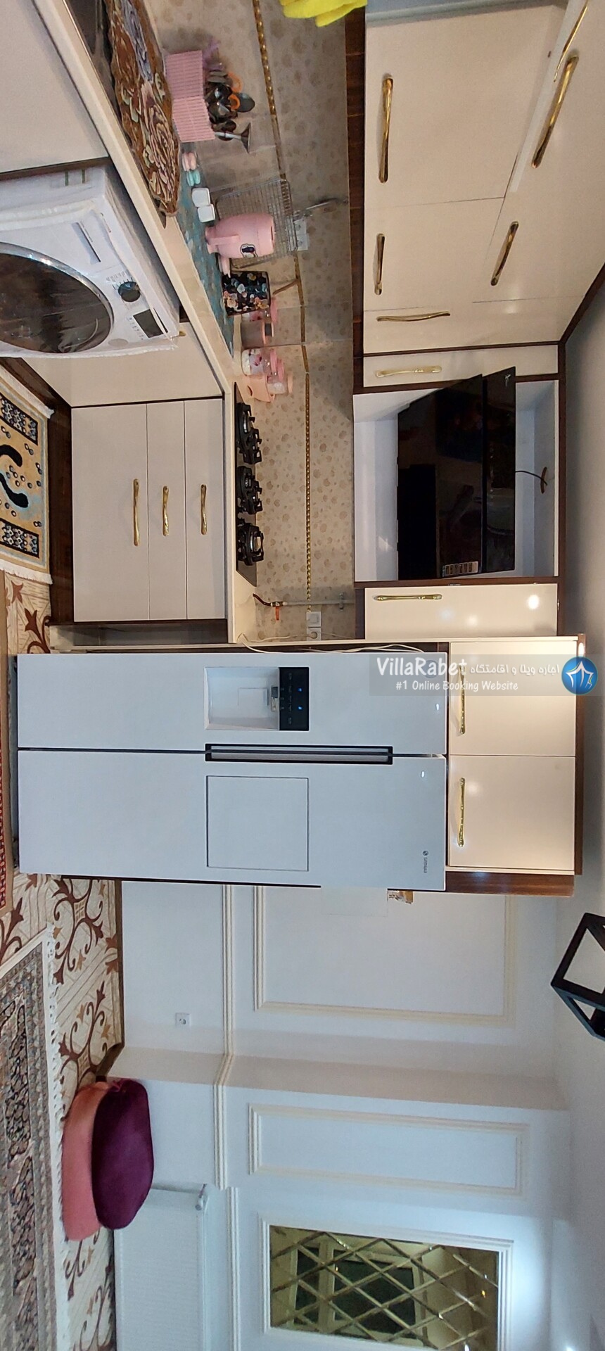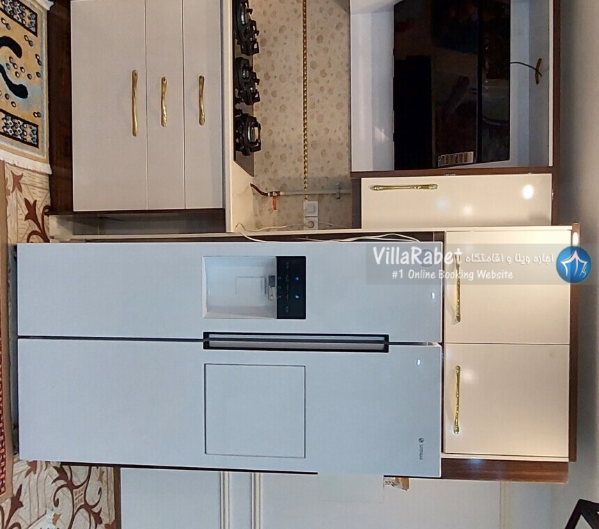 – آشپزخانه با امکانات رفاهی شامل اجاق گاز، یخچال ساید باید ساید، ماشین لباسشویی تمام اتوماتیک، لوازم آشپزی