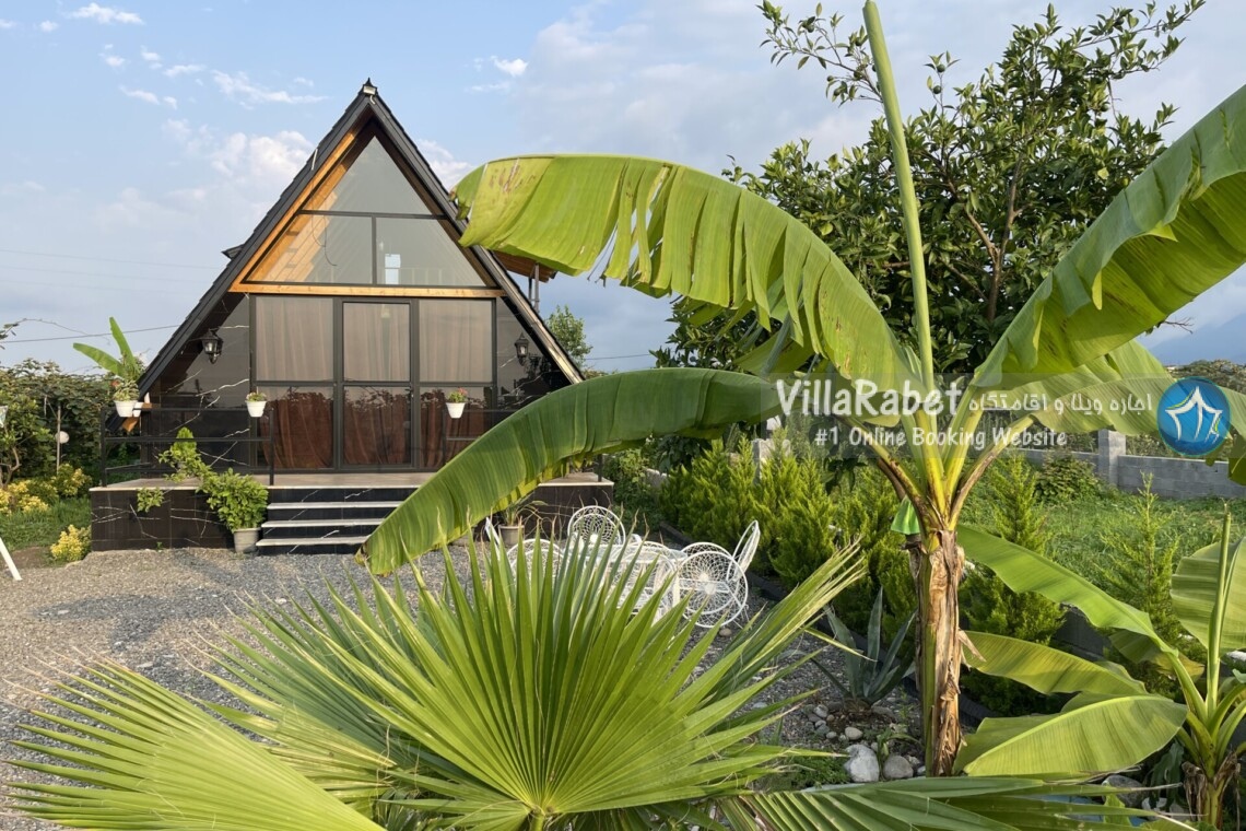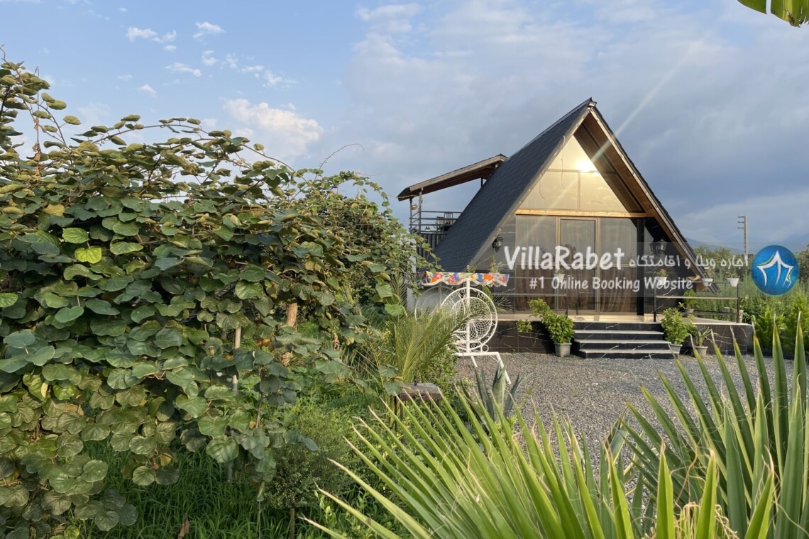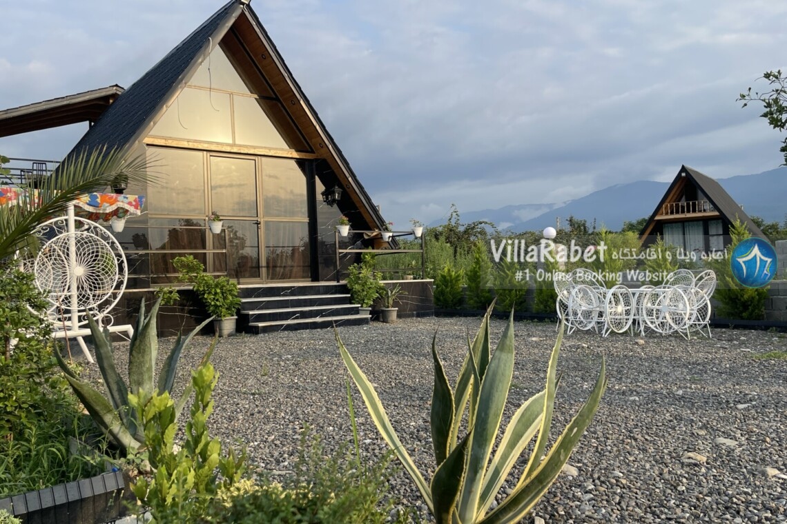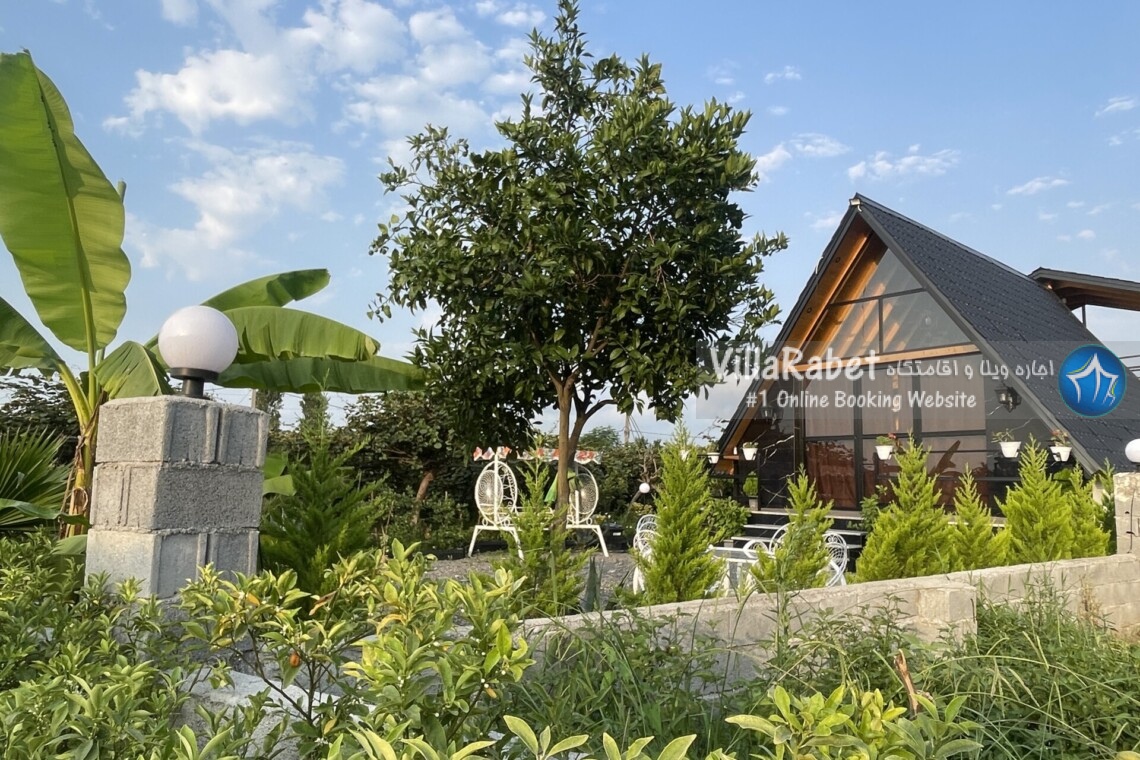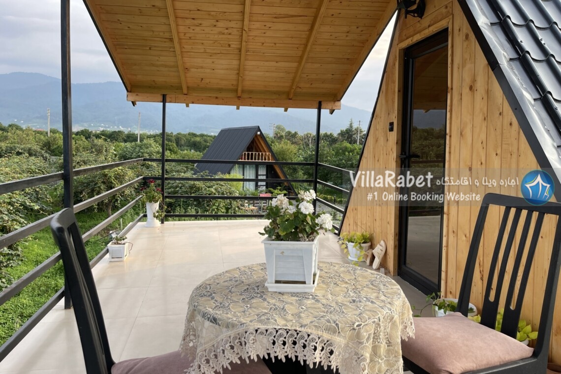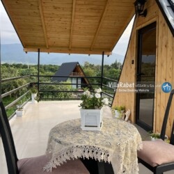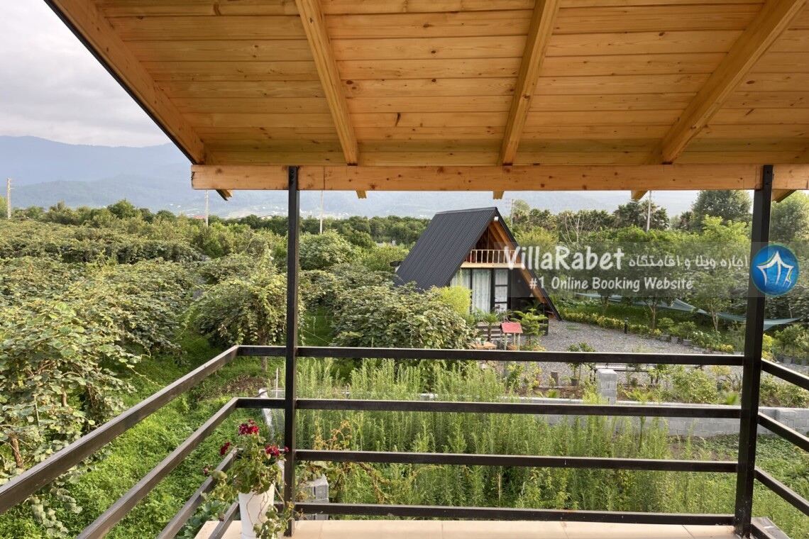 کلبه چوبی سویسی ویو کوه وجنگل به متراژ صد متر تک خواب همراه تراس ویو کوه و جنگل و دور تا دور باغ مرکبات و کیوی