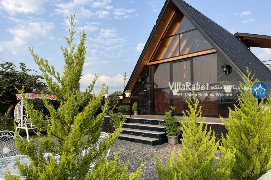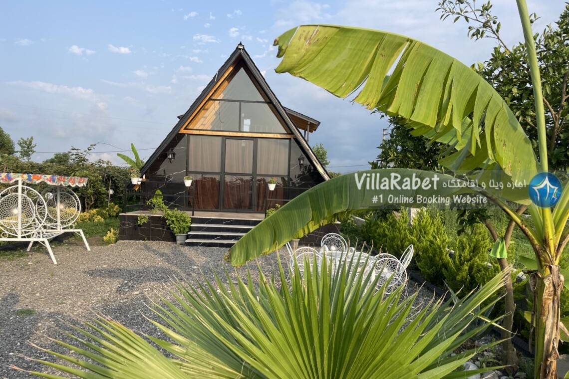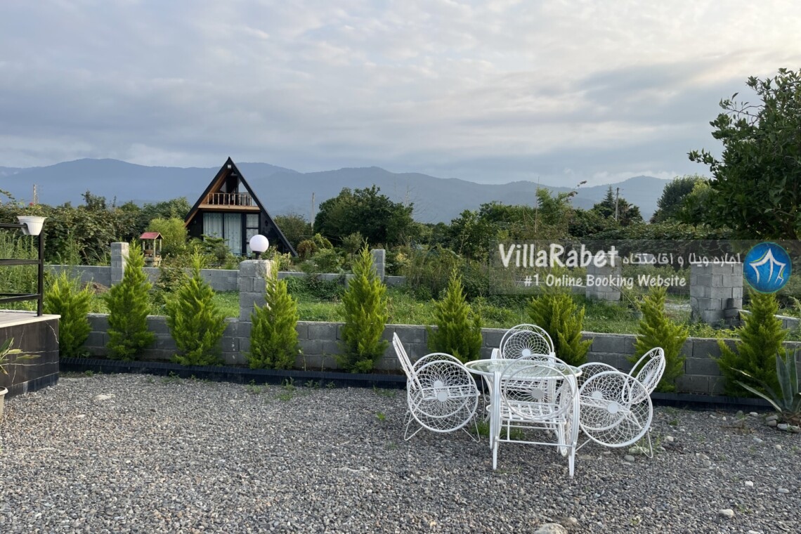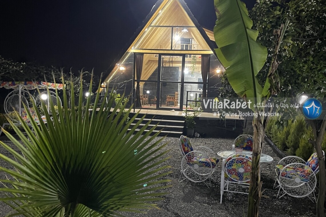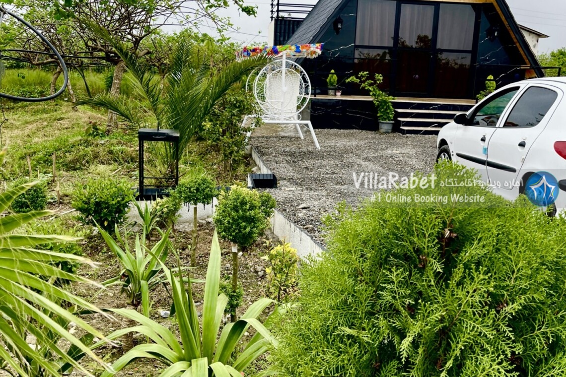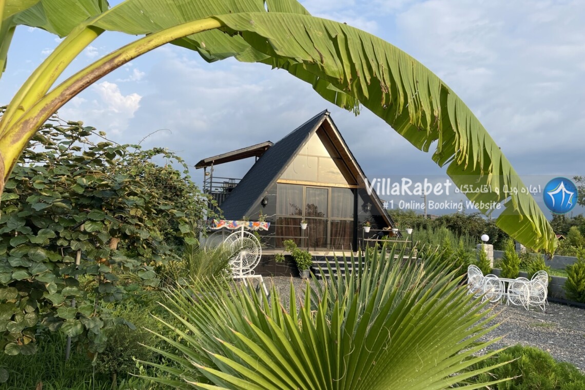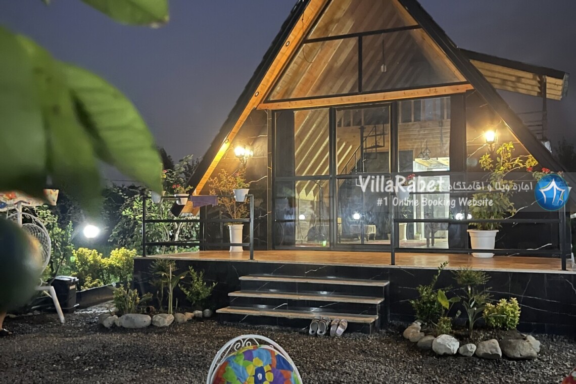 کلبه چوبی سویسی ویو کوه وجنگل به متراژ صد متر تک خواب همراه تراس ویو کوه و جنگل و دور تا دور باغ مرکبات و کیوی