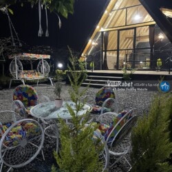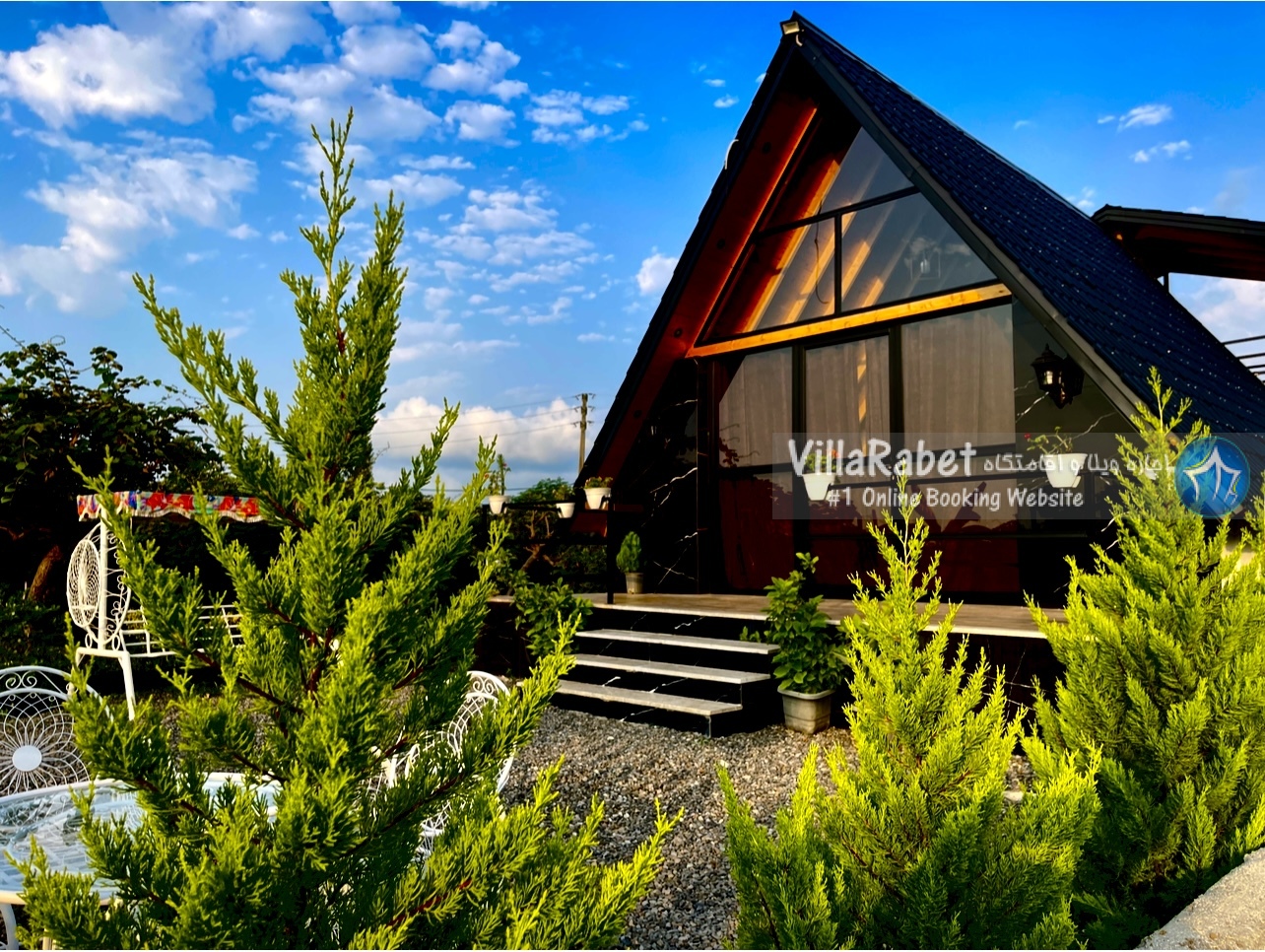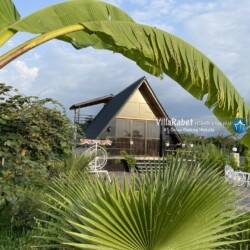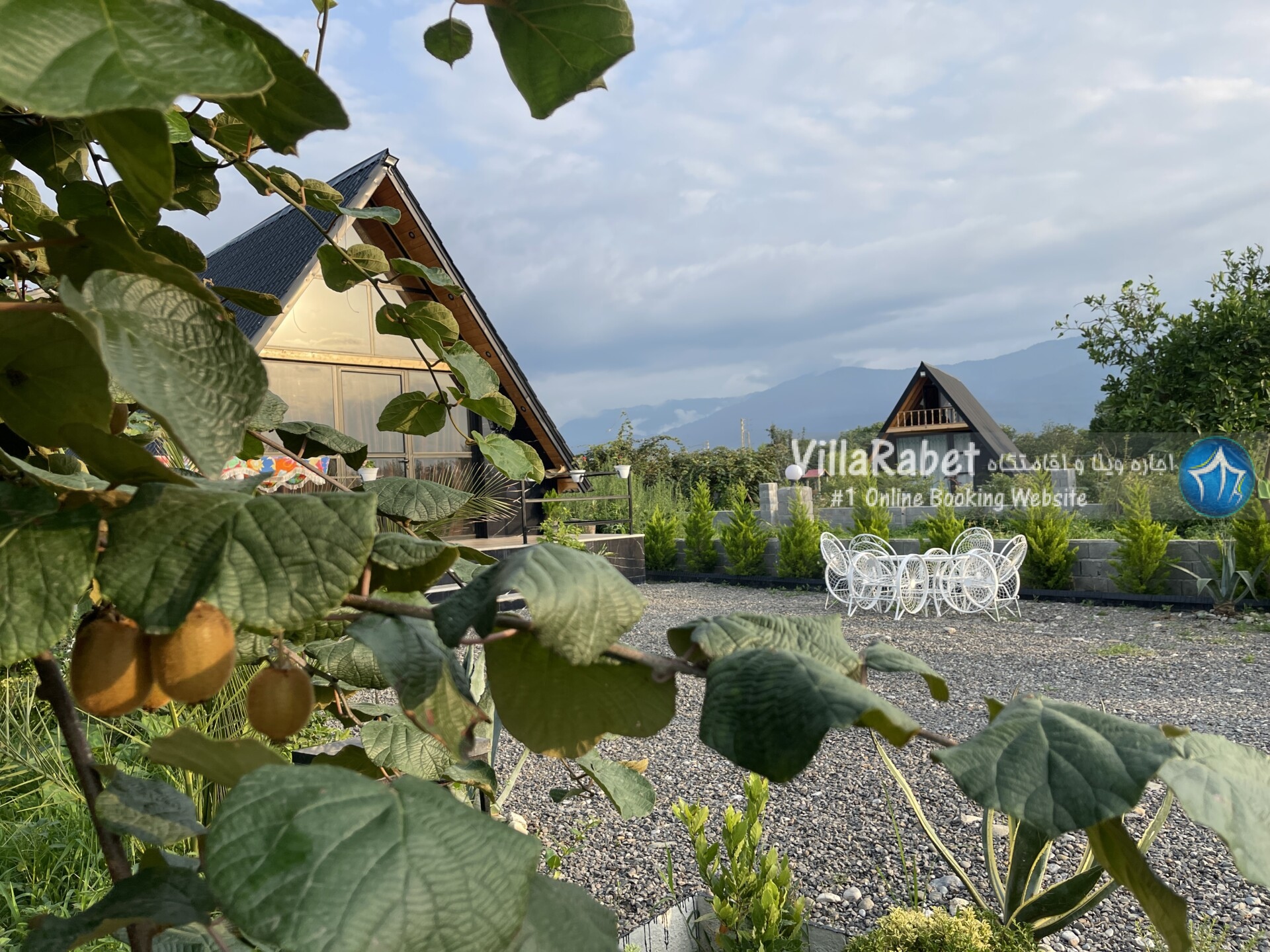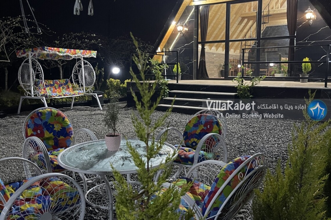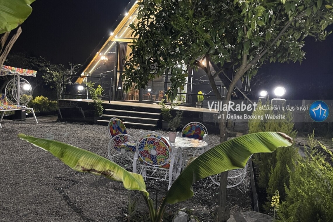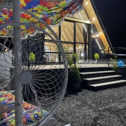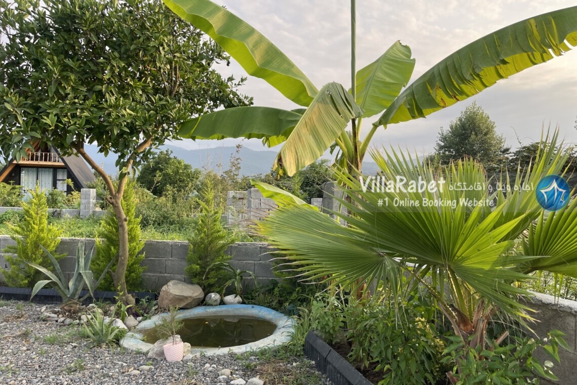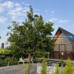 کلبه چوبی سویسی ویو کوه وجنگل به متراژ صد متر تک خواب همراه تراس ویو کوه و جنگل و دور تا دور باغ مرکبات و کیوی