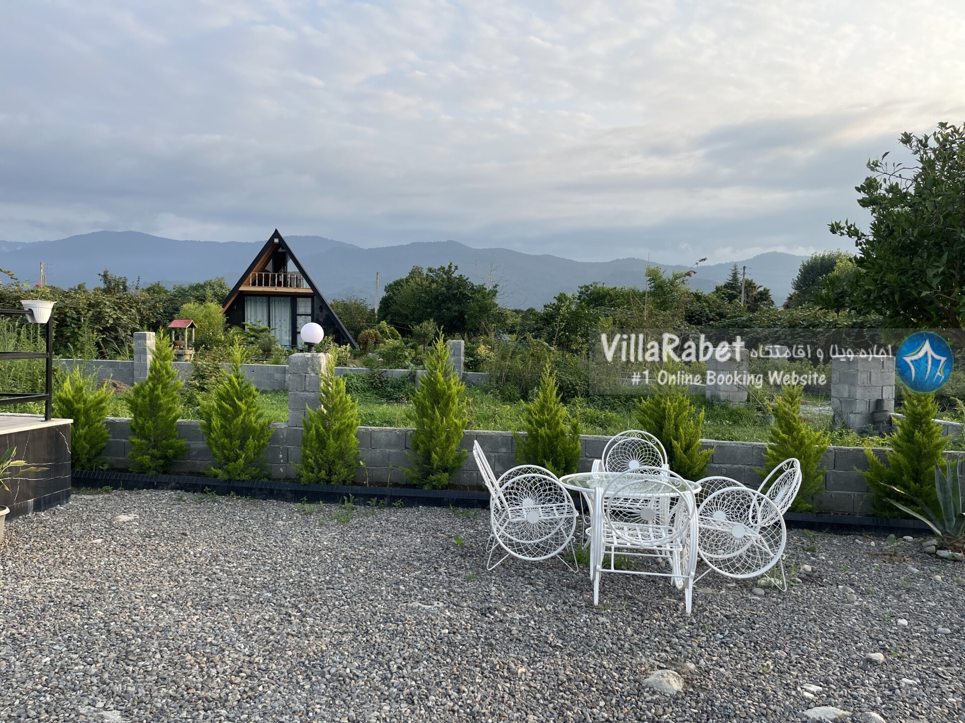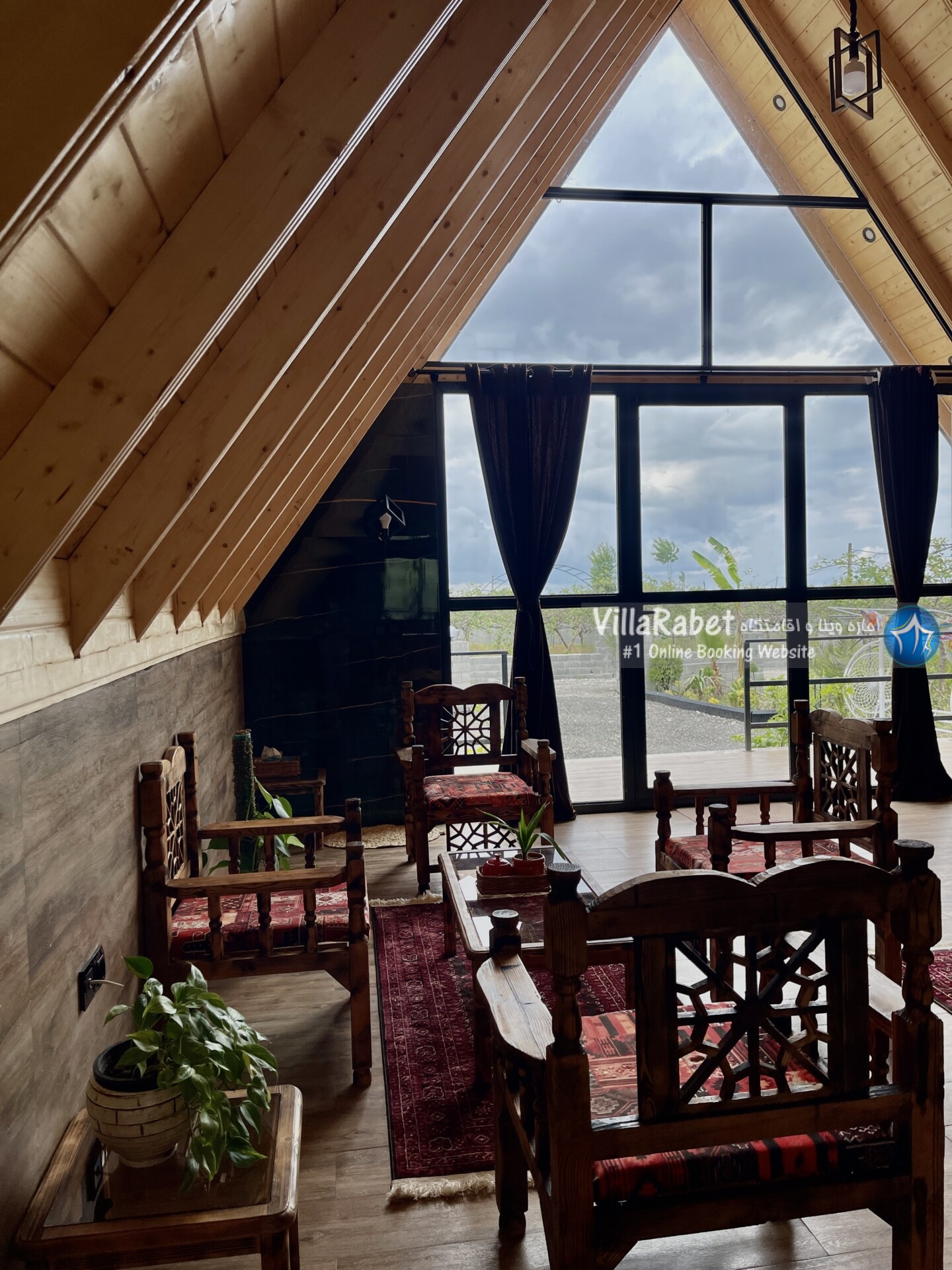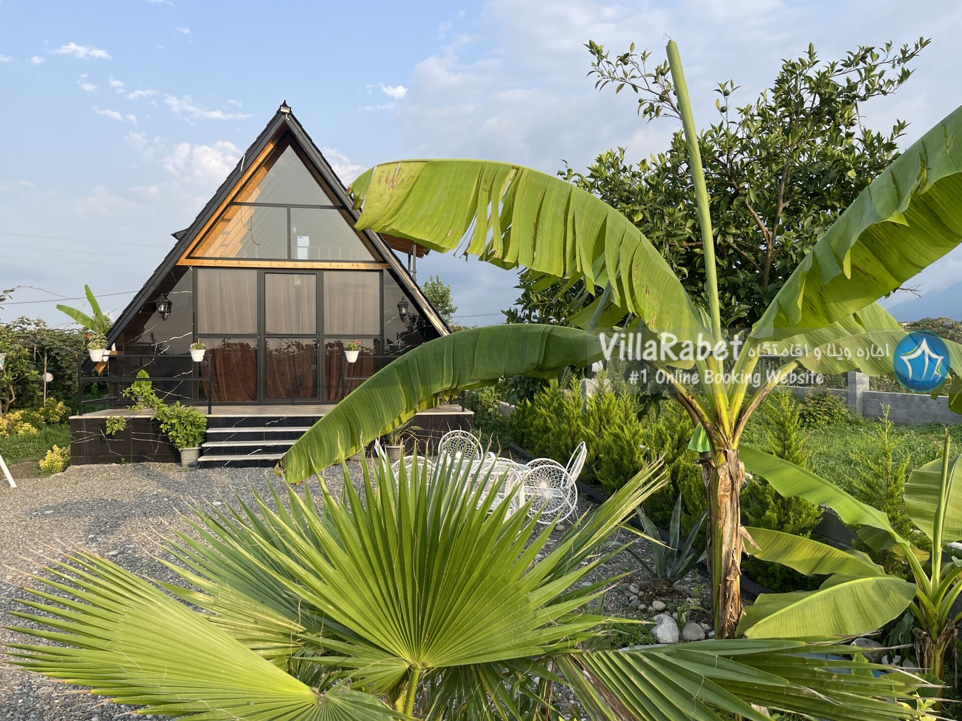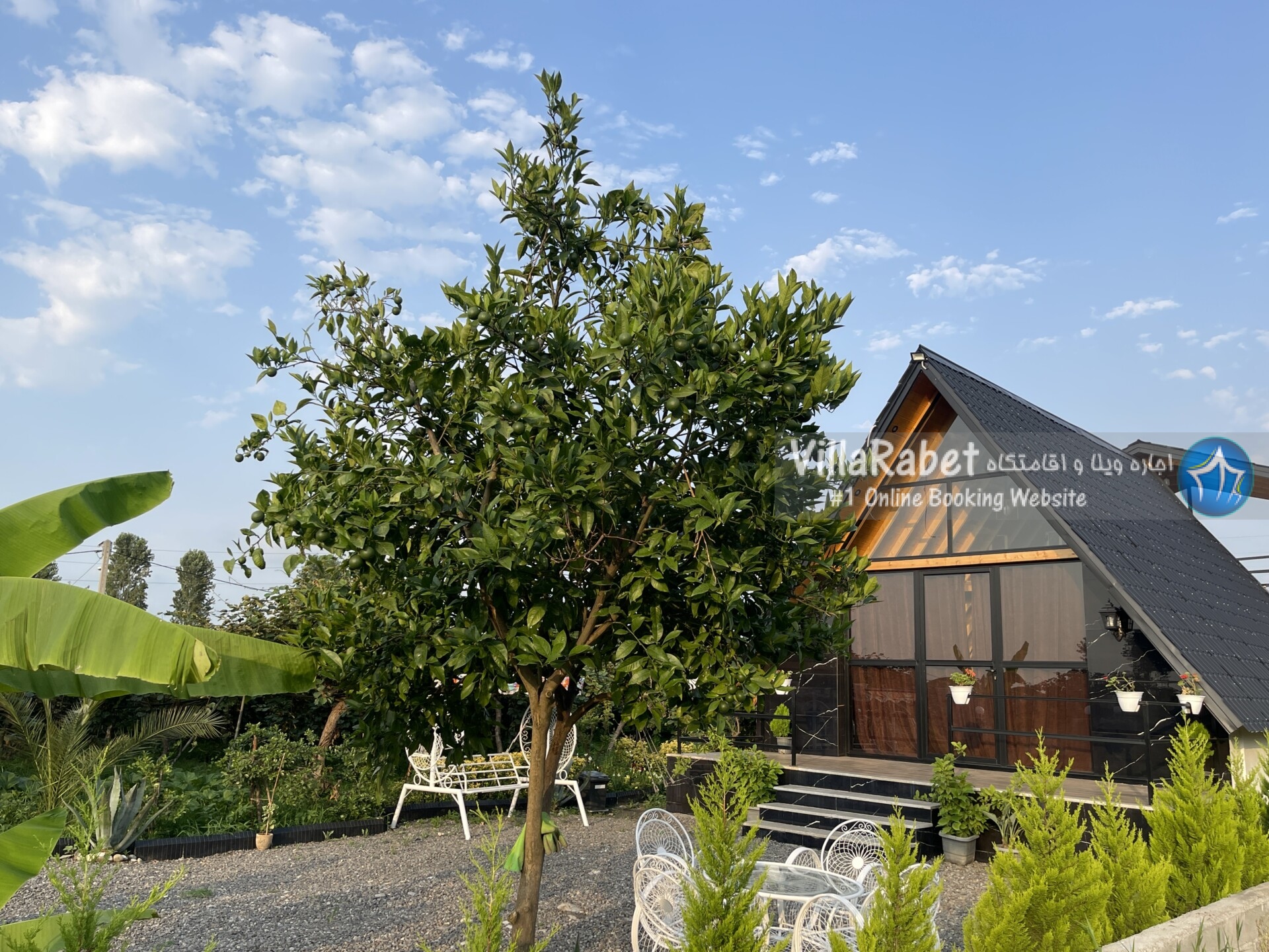 کلبه چوبی سویسی ویو کوه وجنگل به متراژ صد متر تک خواب همراه تراس ویو کوه و جنگل و دور تا دور باغ مرکبات و کیوی
