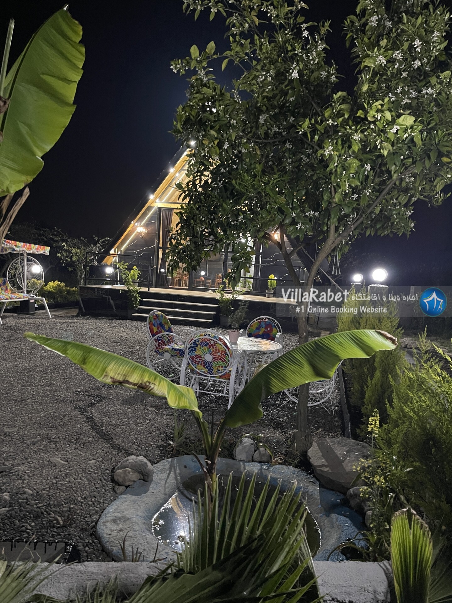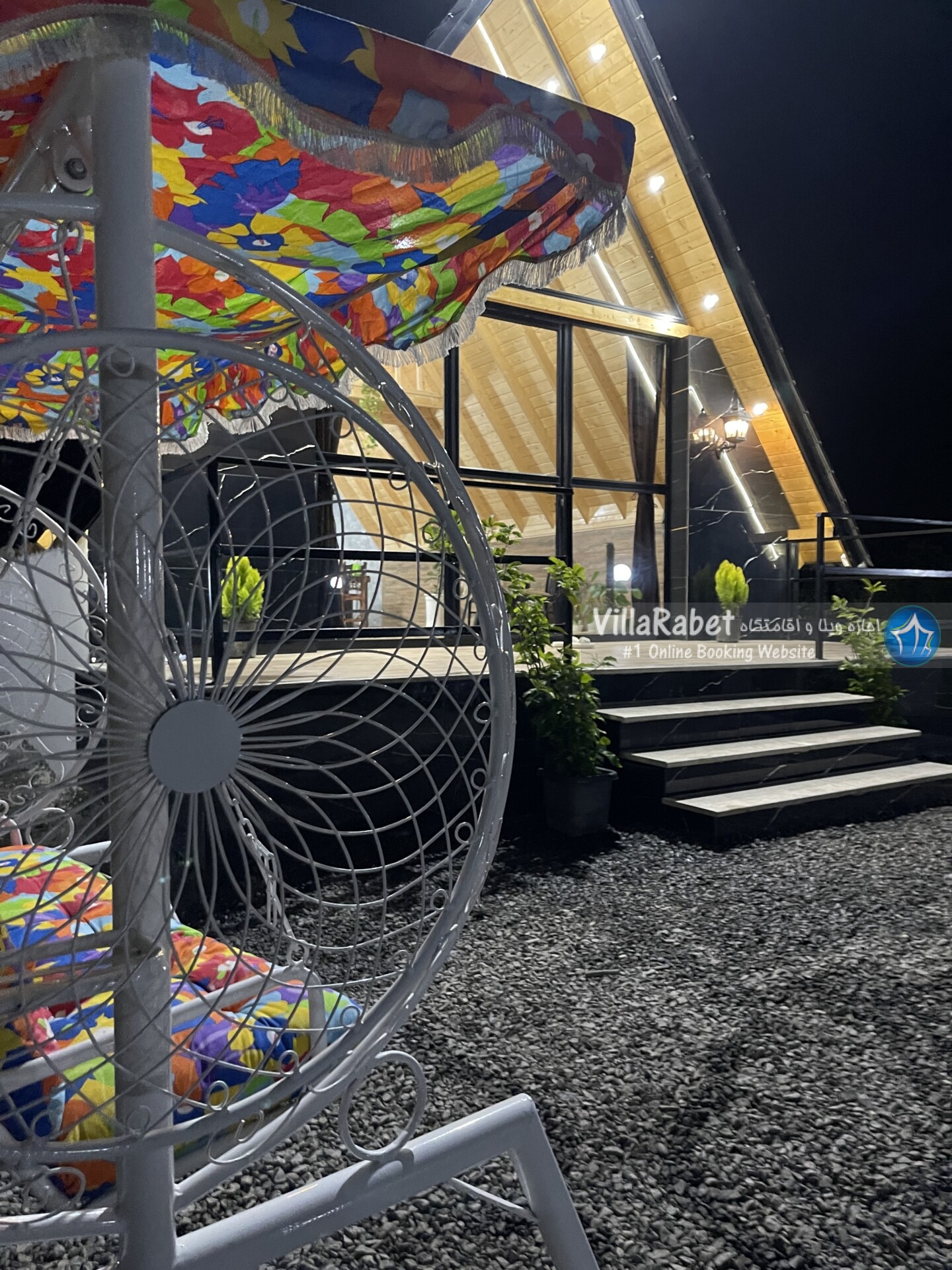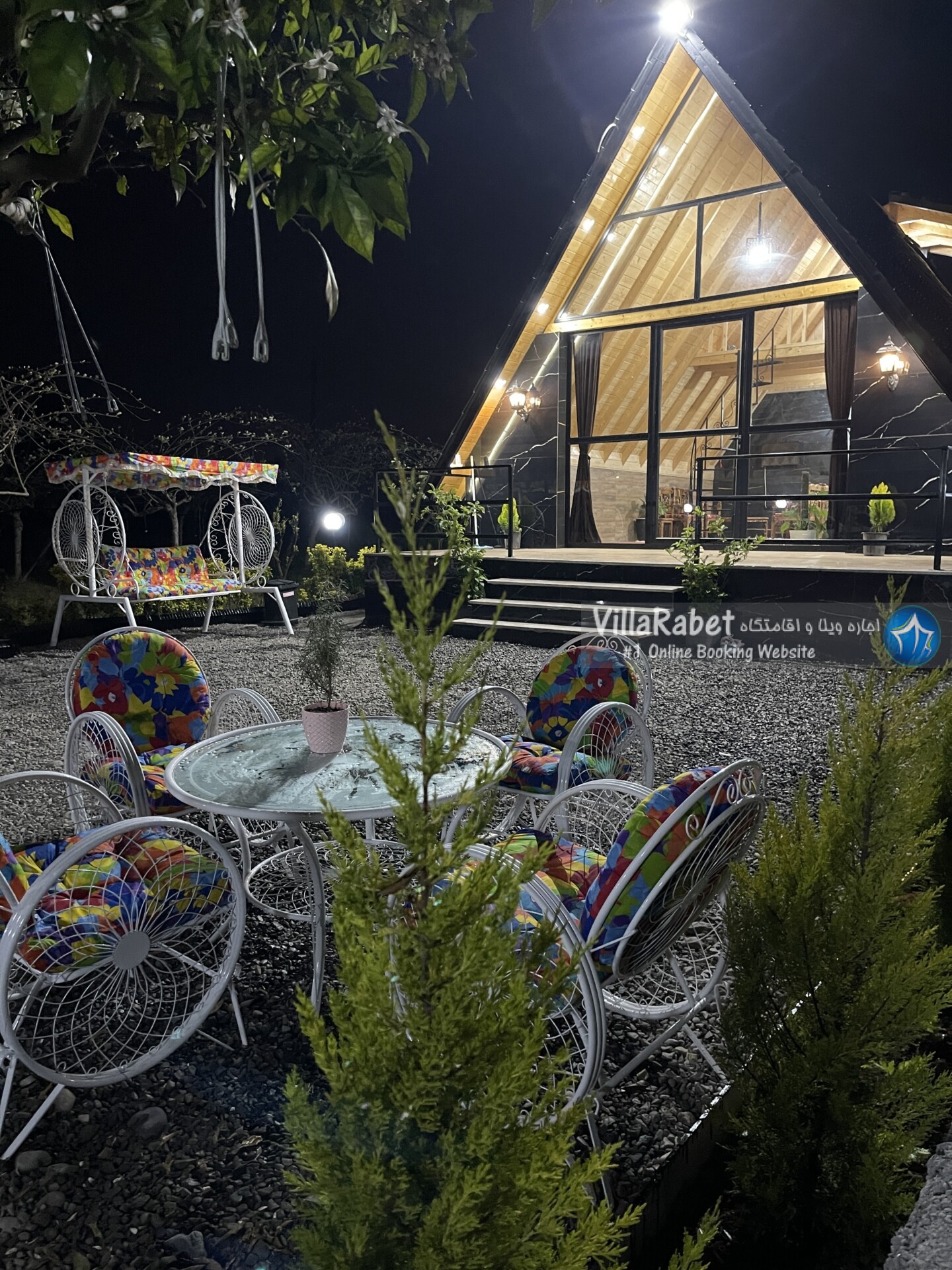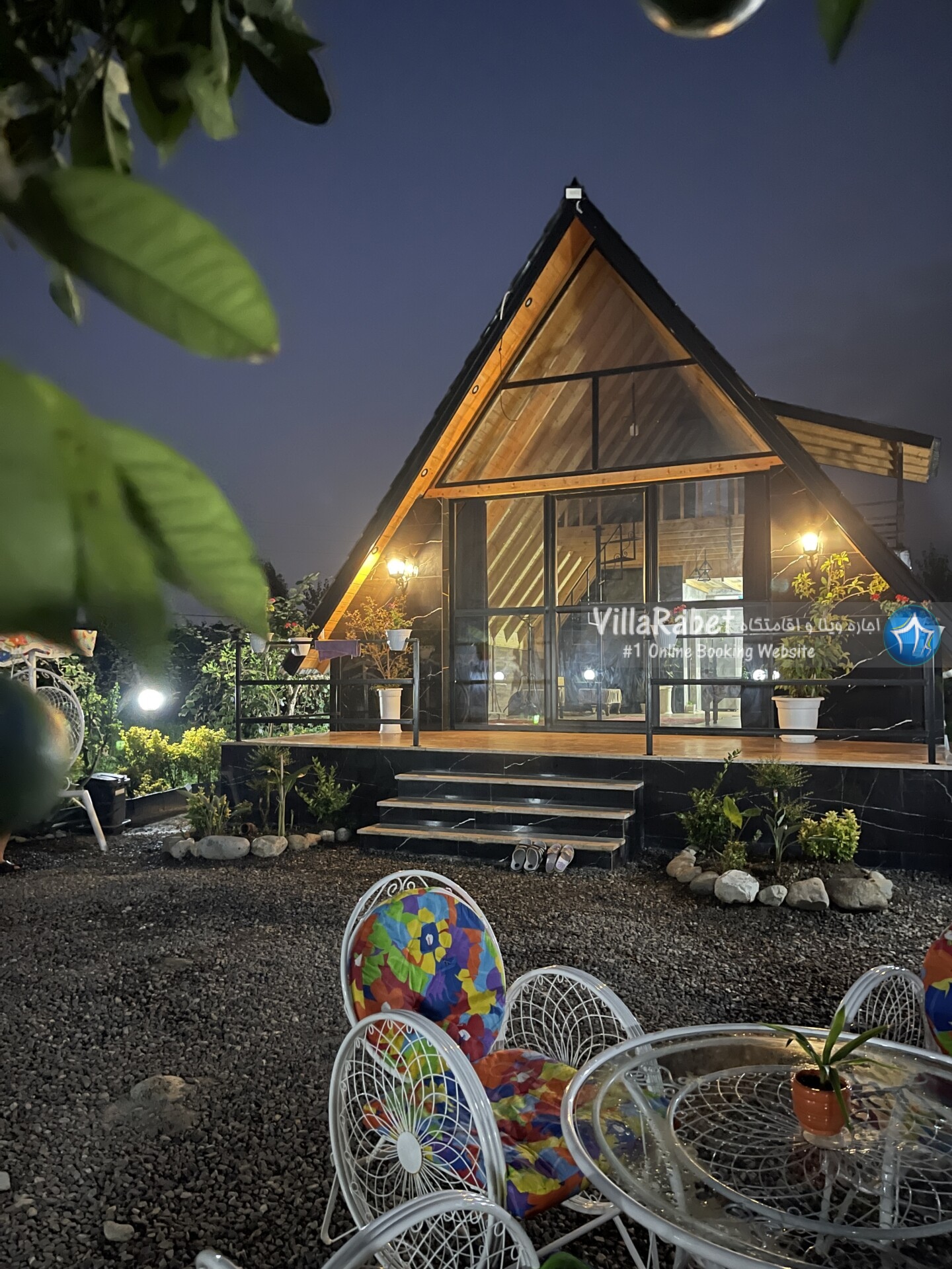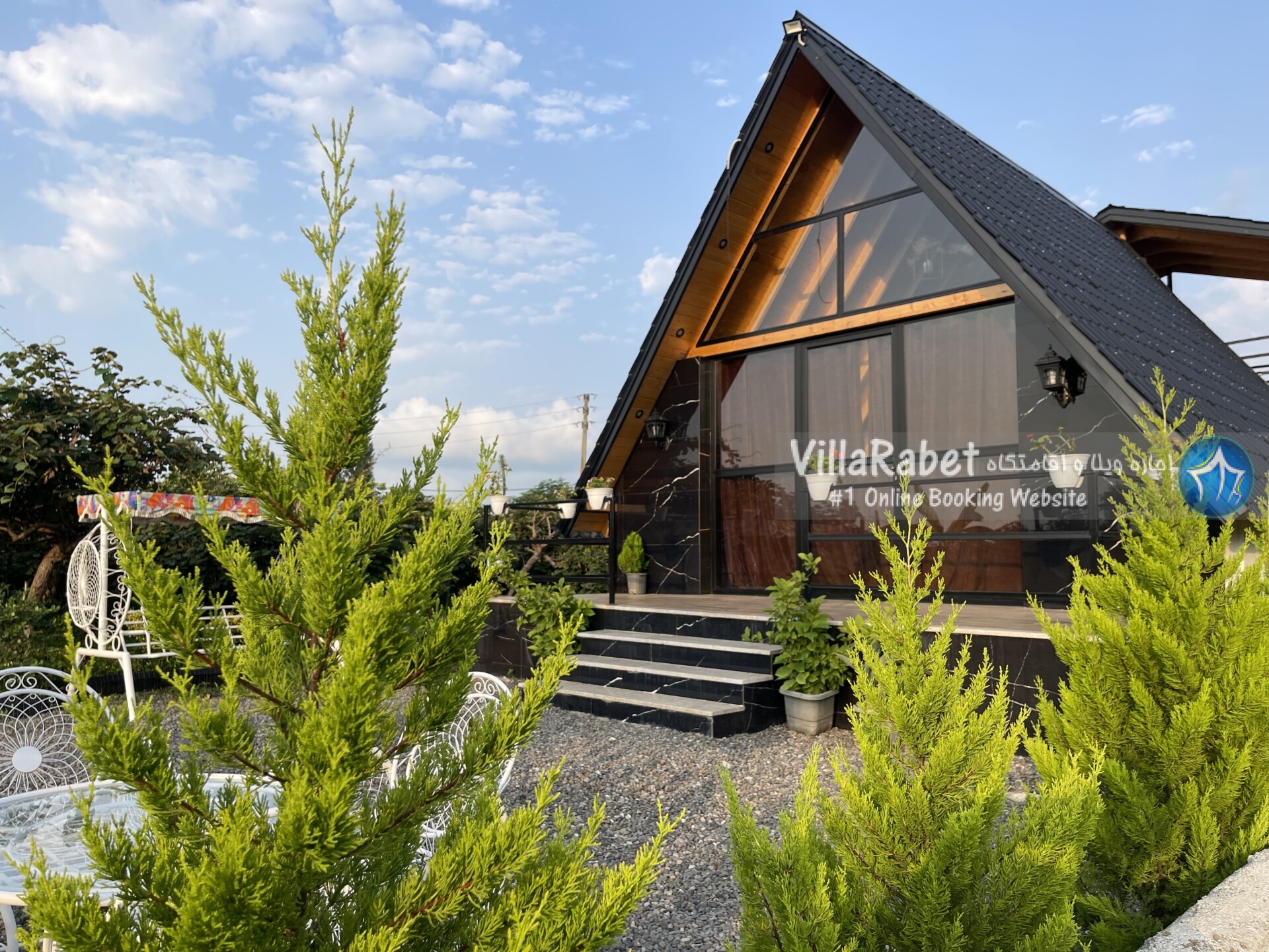 کلبه چوبی سویسی ویو کوه وجنگل به متراژ صد متر تک خواب همراه تراس ویو کوه و جنگل و دور تا دور باغ مرکبات و کیوی